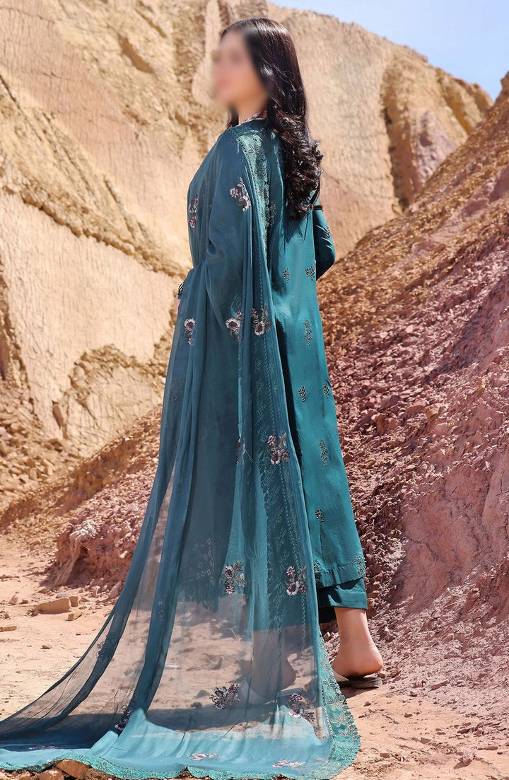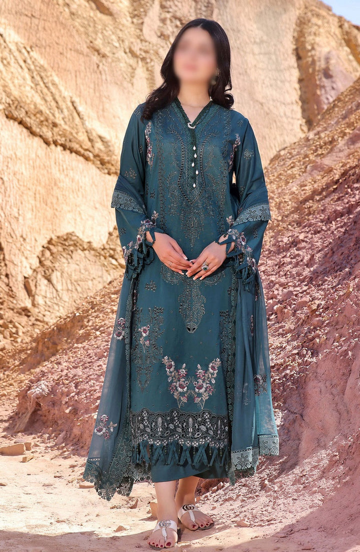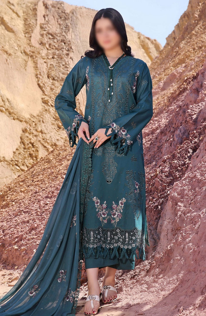 Afsoon Embroidered Lawn Collection 2024 By Humdum has been styled in the image for photography and illustrative purposes.