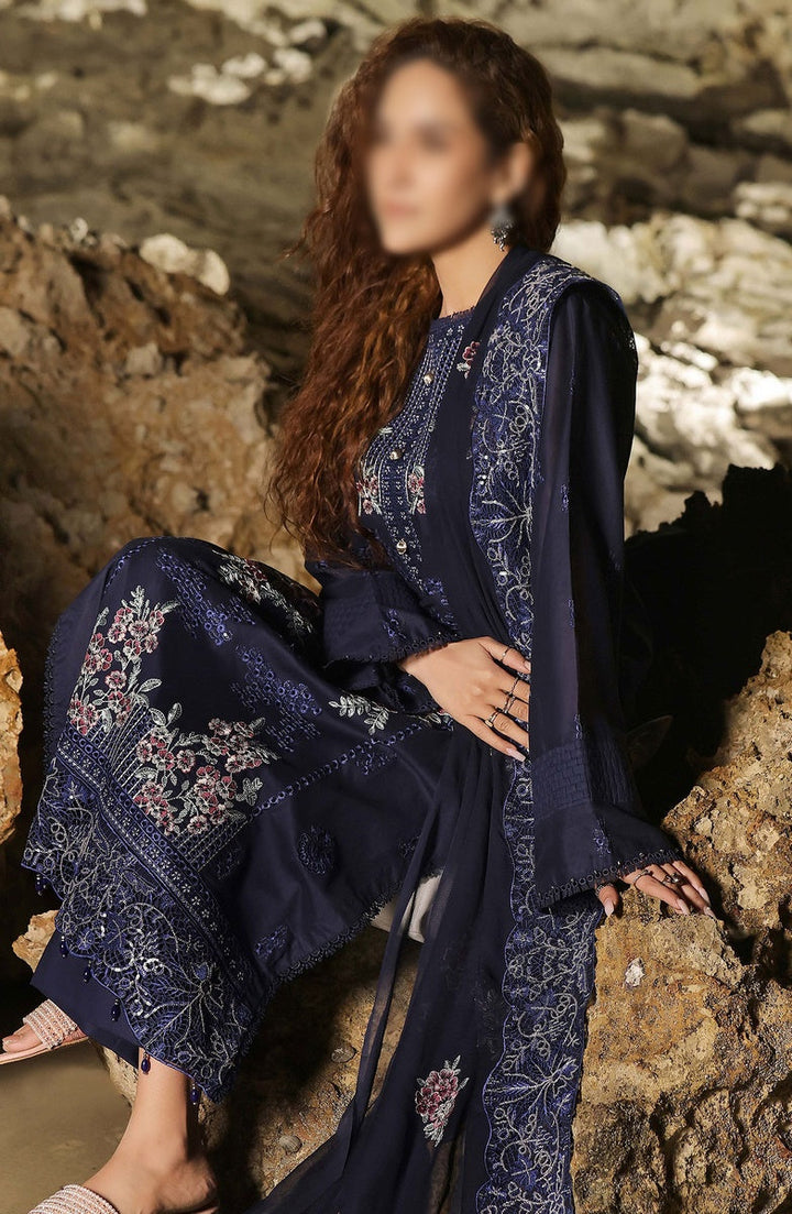 Afsoon Embroidered Lawn Collection 2024 By Humdum has been styled in the image for photography and illustrative purposes.