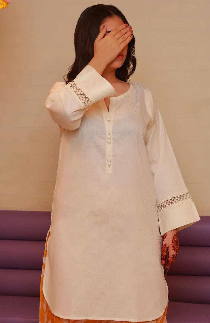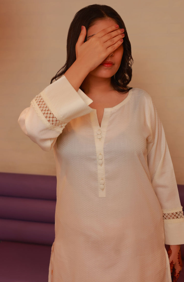 Amna Khadija Casual Cotton Stitched 2 Piece Suit - BBMDD-13M - AM25BNBD3 - White - Eid Collection
