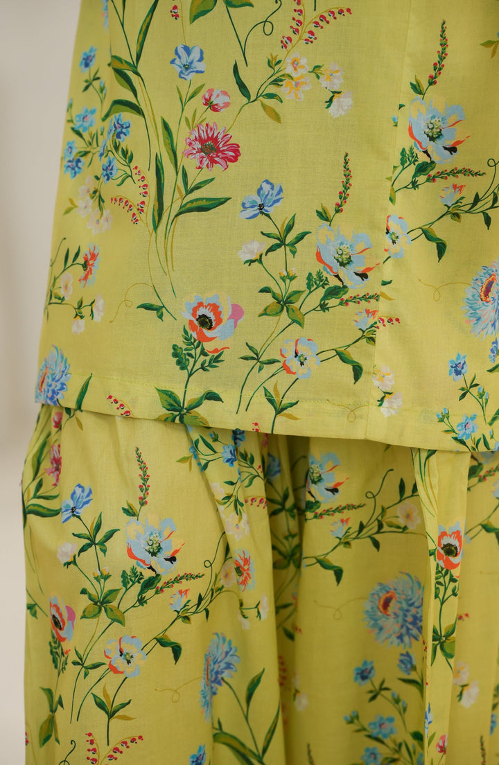Digital print and embroidered cotton monsoon co-ord set with embellishments and farshi shalwar