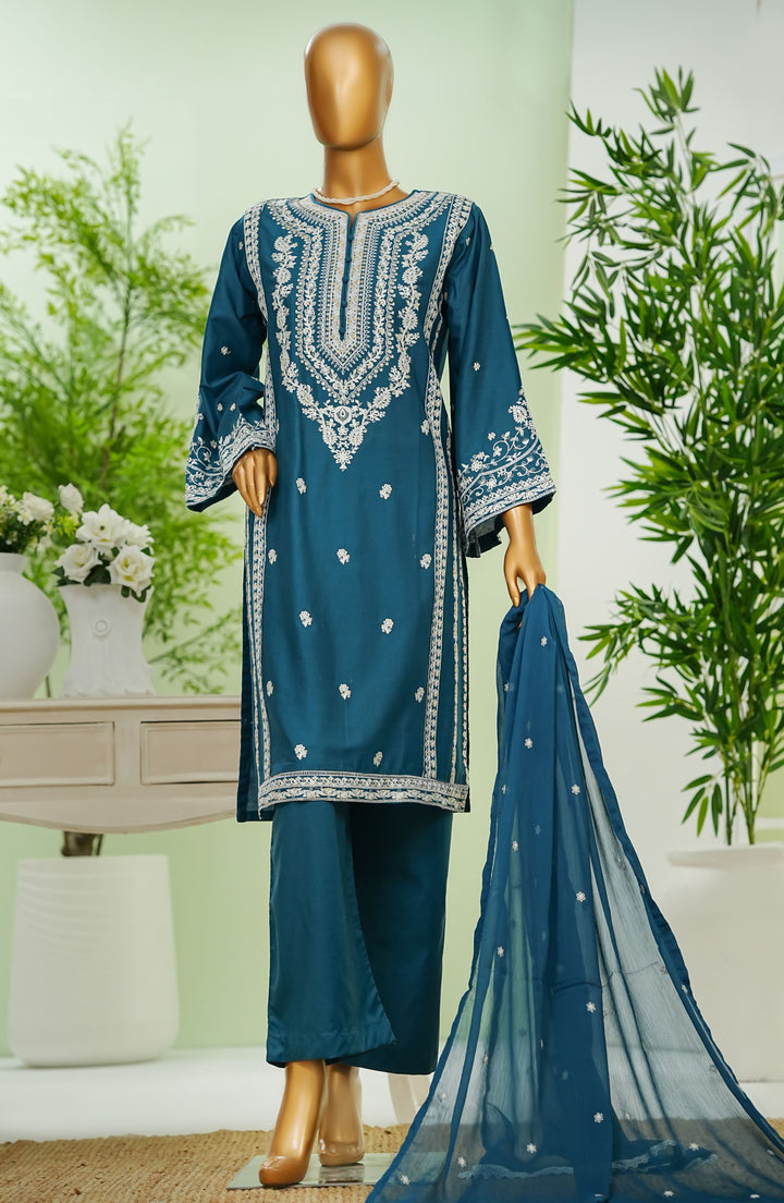 Amna Khadija Embroidered Cotton Stitched 3 Piece Suit - AKEC-03 - Dark Blue