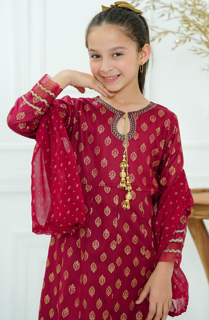 The standard style comes as a long-sleeved kameez with dupatta and trouser/shawlar.