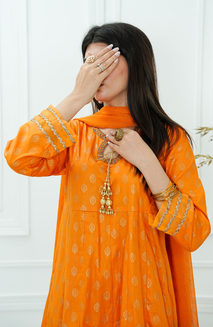 Amna Khadija Embroidered Cotton Stitched 3 Piece Suit - BBMDD-10-M - AK25BNBD2 - Orange - Summer Collection