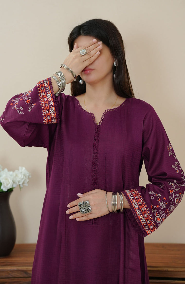 Amna Khadija Embroidered Jacquard Stitched 2 Piece Suit - WCPTD-02 - AM25WCPTD - Magenta - Casual Collection