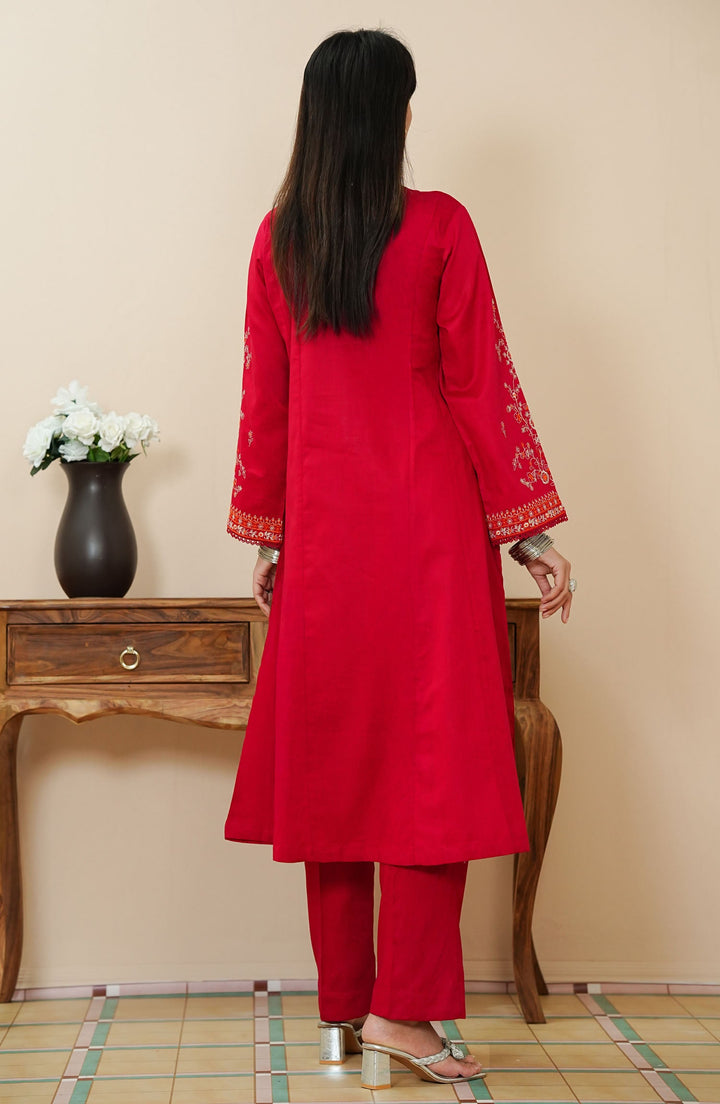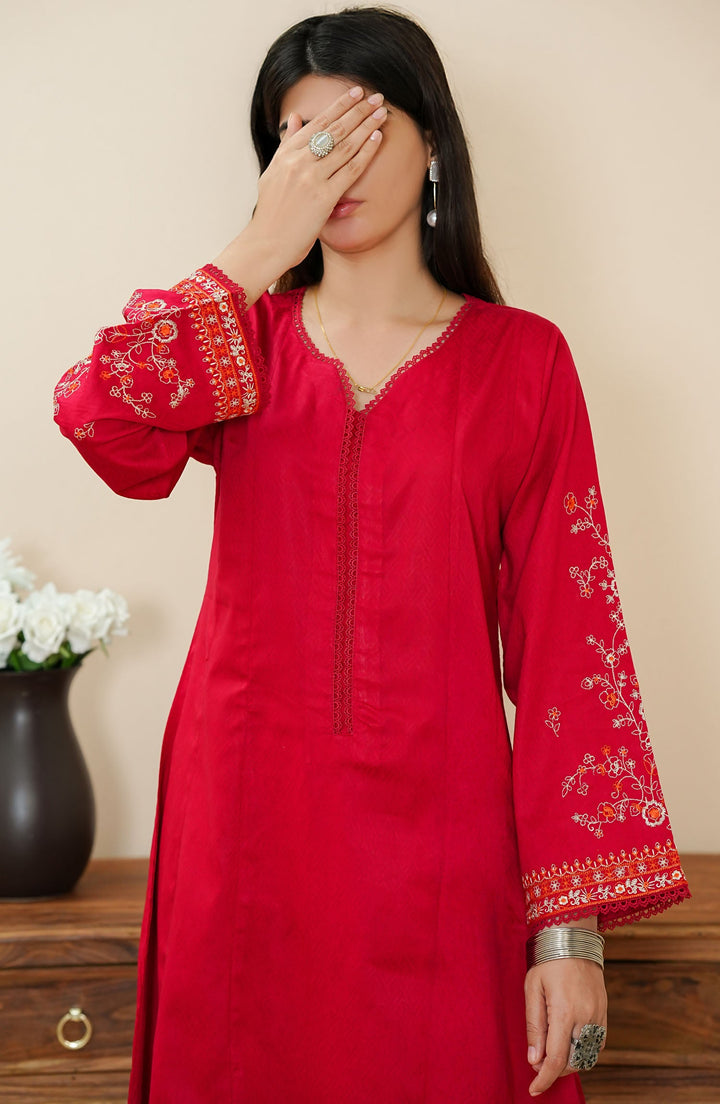 Amna Khadija Embroidered Jacquard Stitched 2 Piece Suit - WCPTD-04 - AM25WCPTD - Red - Casual Collection