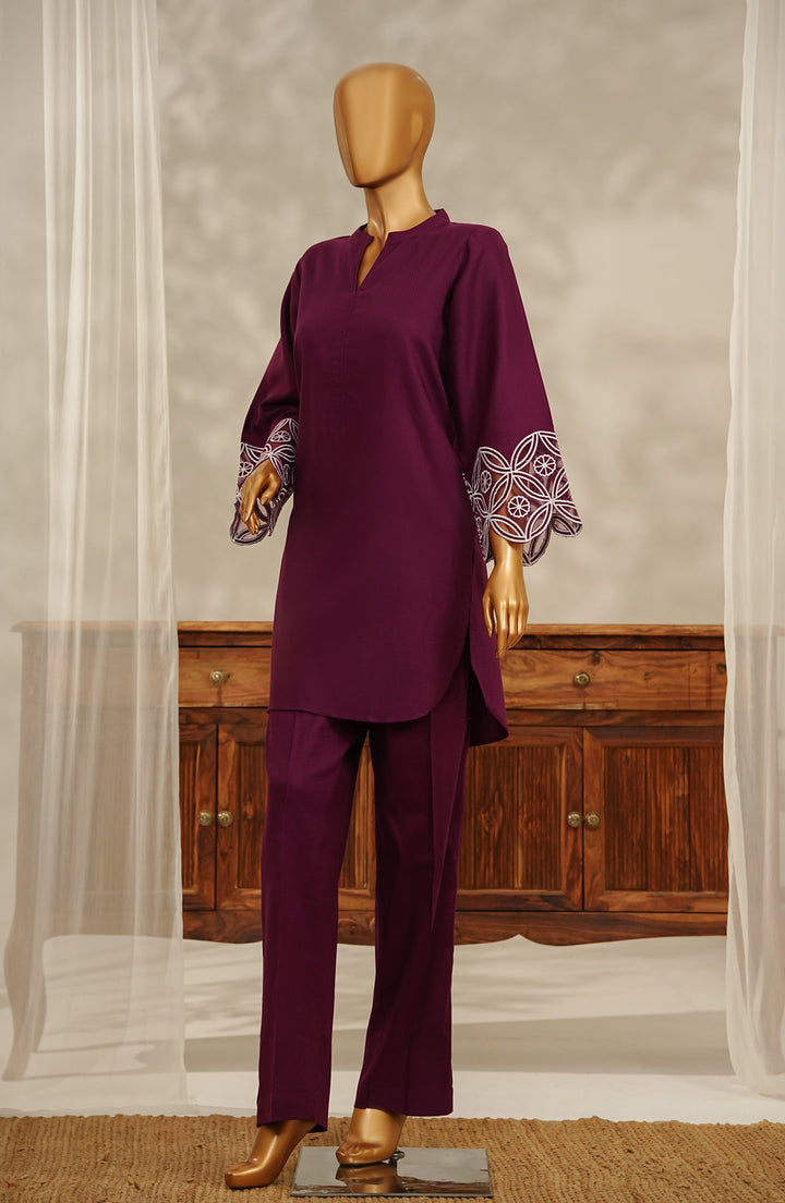 Amna Khadija Embroidered Lawn Stitched 2 Piece Suit - Design-01 - AK25VC5 - Purple - Casual Collection