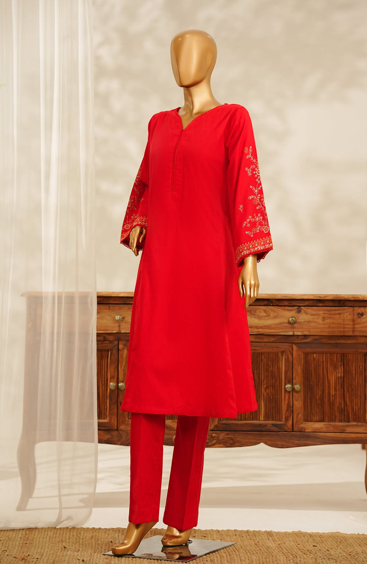 Amna Khadija Embroidered Lawn Stitched 2 Piece Suit - Design-05 - AK25VC5 - Red - Casual Collection
