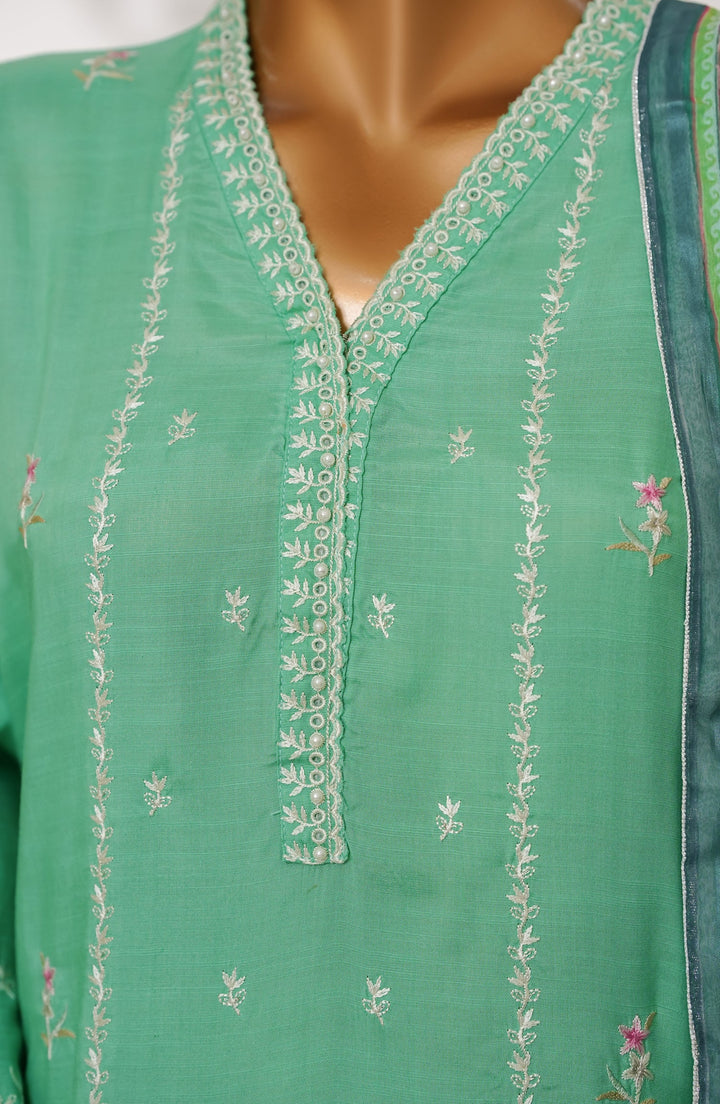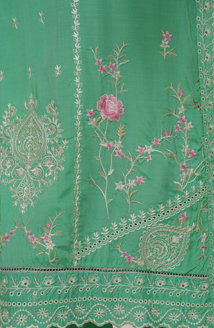 Manisa by Amna Khadija Embroidered Raw Silk Stitched 3 Piece Suit - Design-01 - AM25MANS - Green - Festive Collection