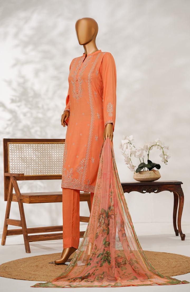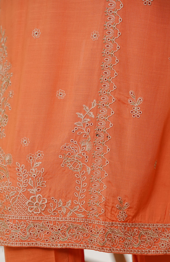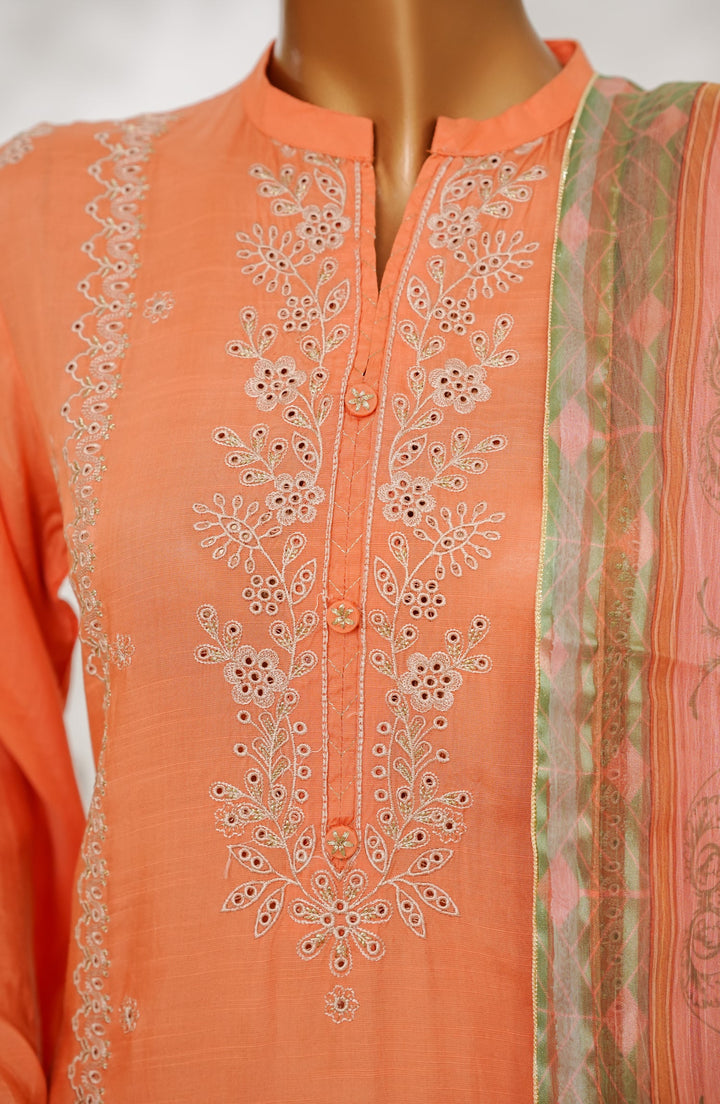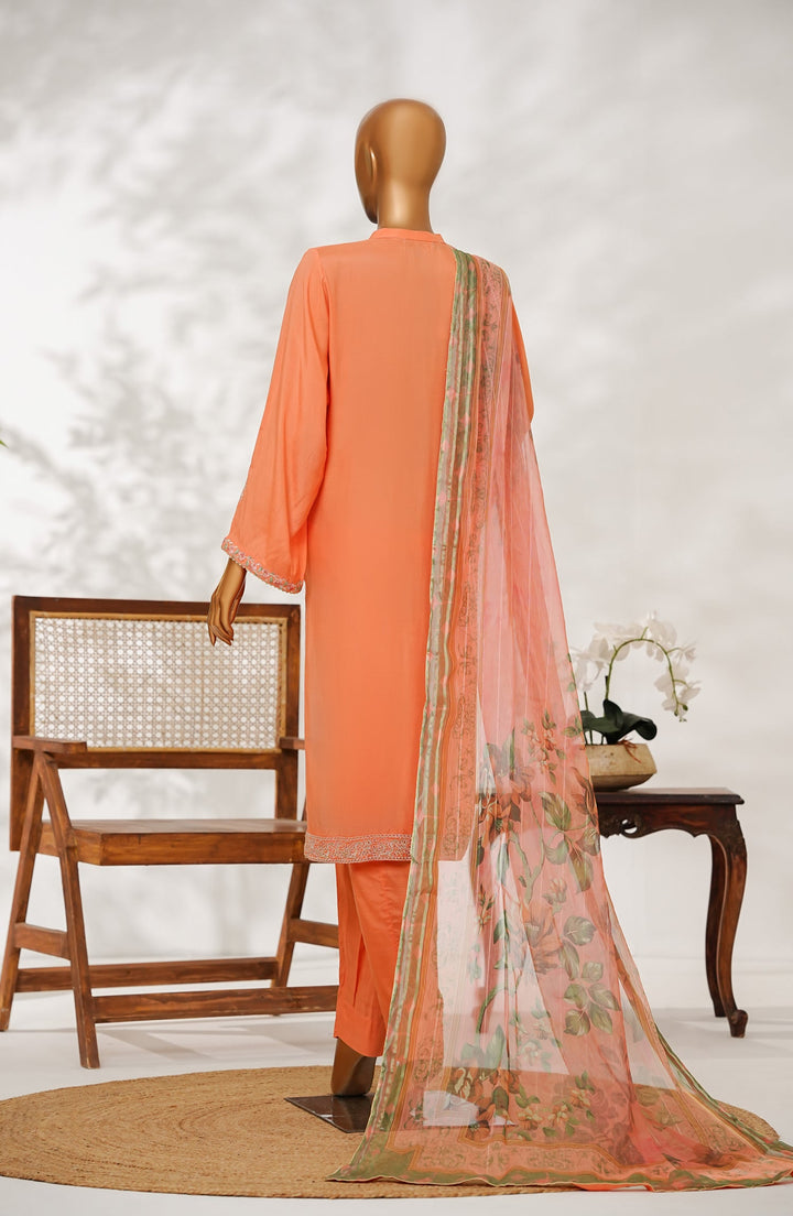 Manisa by Amna Khadija Embroidered Raw Silk Stitched 3 Piece Suit - Design-04 - AM25MANS - Orange - Festive Collection
