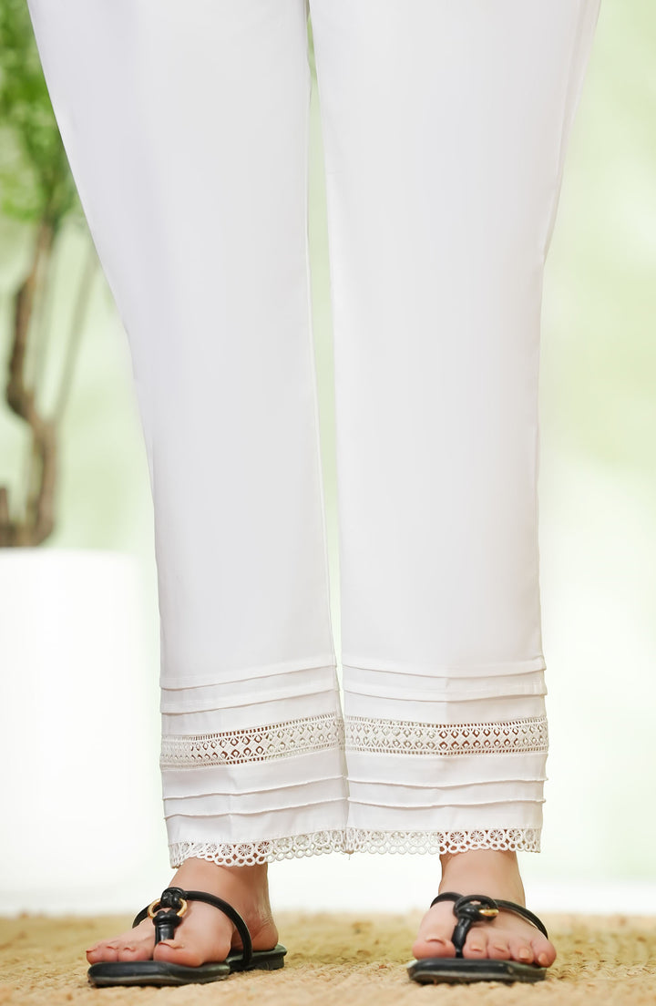 Amna Khadija Fine Cotton Stretchable Trouser - D - 01 - White