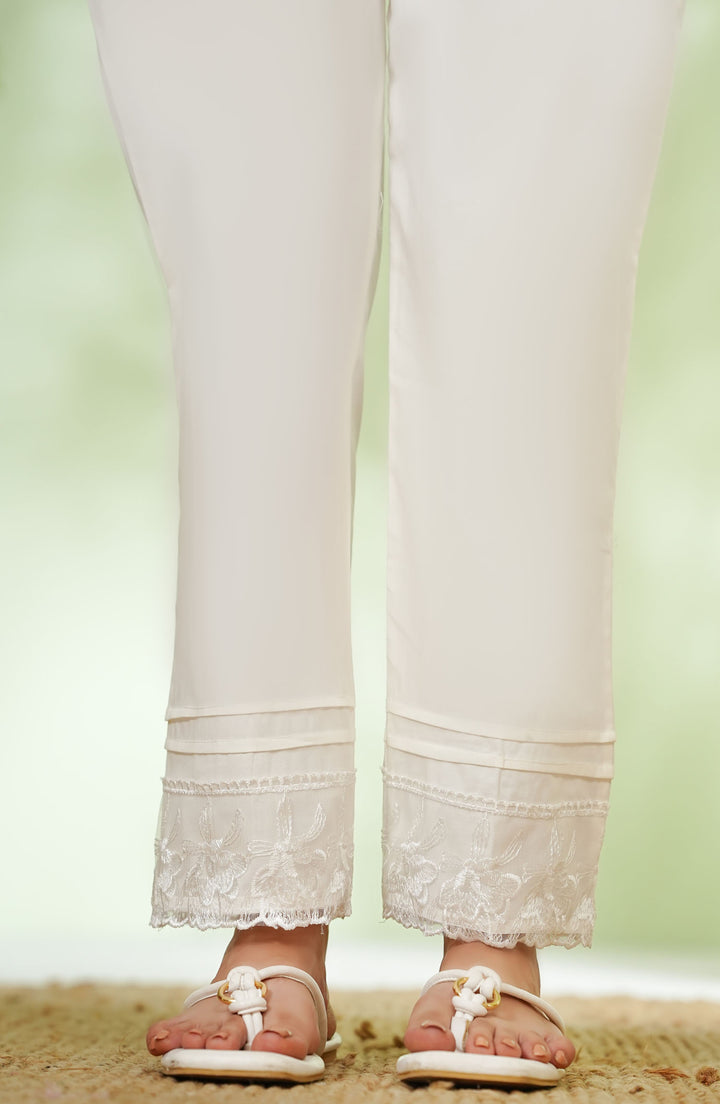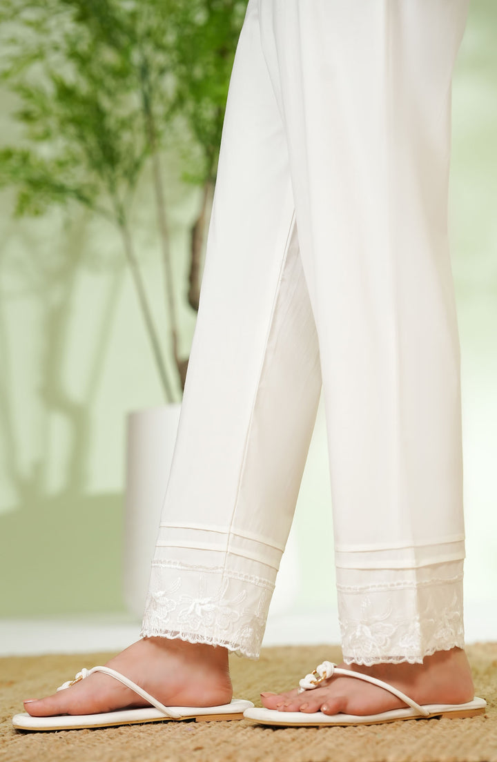 Amna Khadija Fine Cotton Stretchable Trouser - D - 02 - White