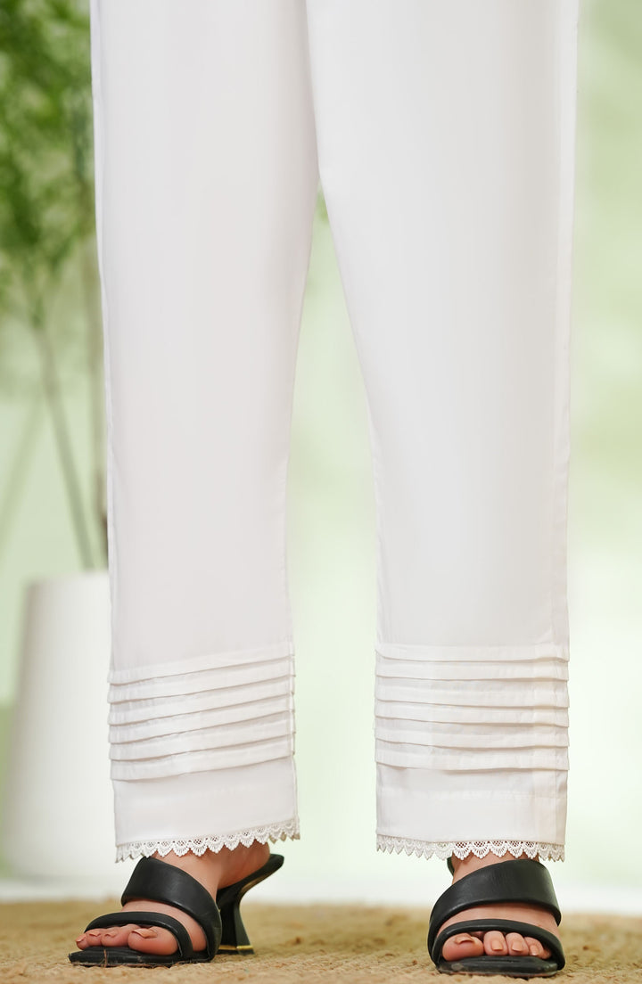 Amna Khadija Fine Cotton Stretchable Trouser - D - 03 - White