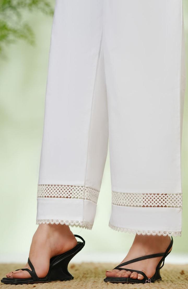 Amna Khadija Fine Cotton Stretchable Trouser - D - 05 - White