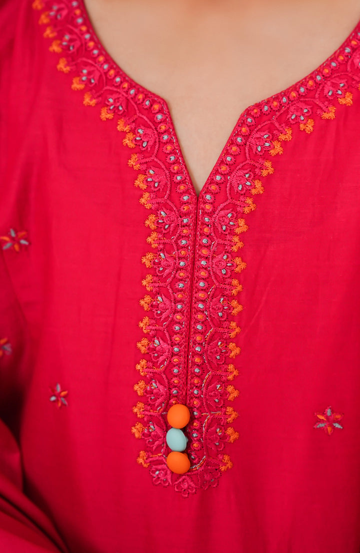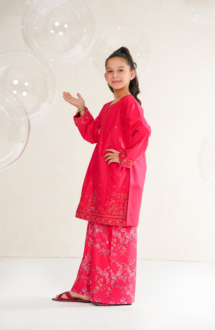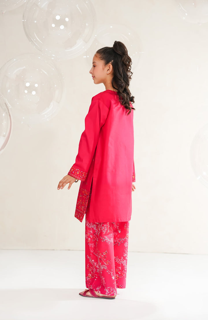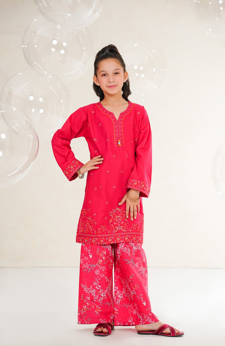 Amna Khadija Guriya Embroidered Cotton Stitched 2 Piece Suit - AKG-05 - AM25GRY - Pink - Girls Collection