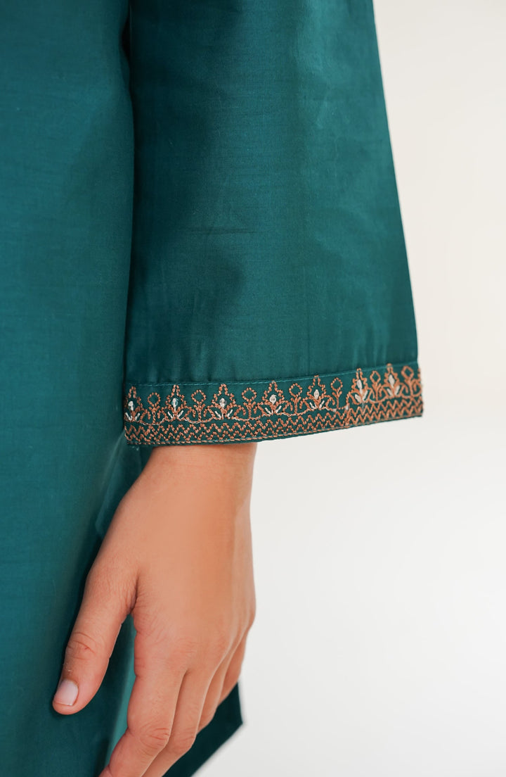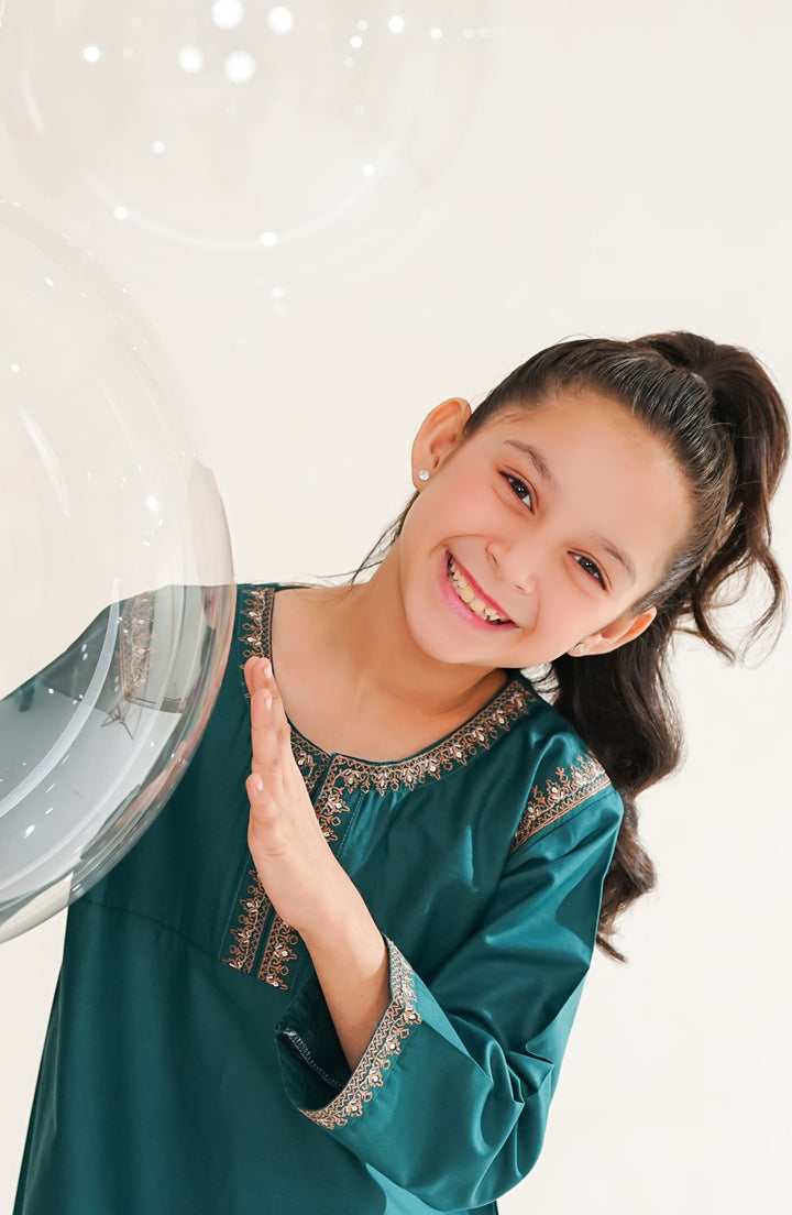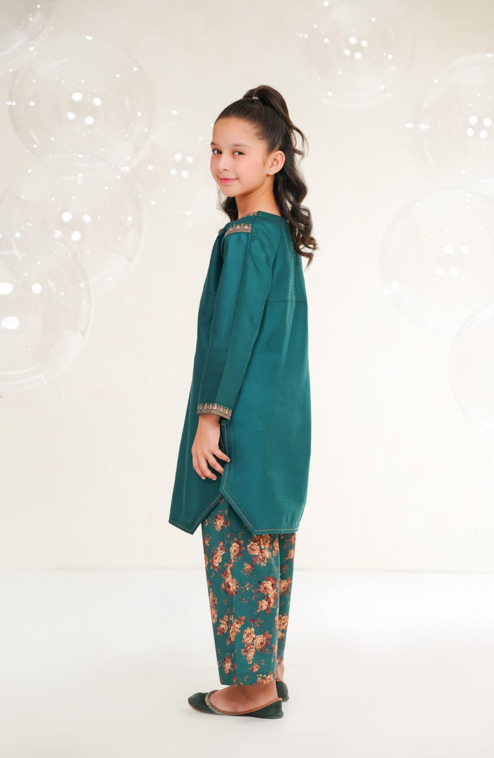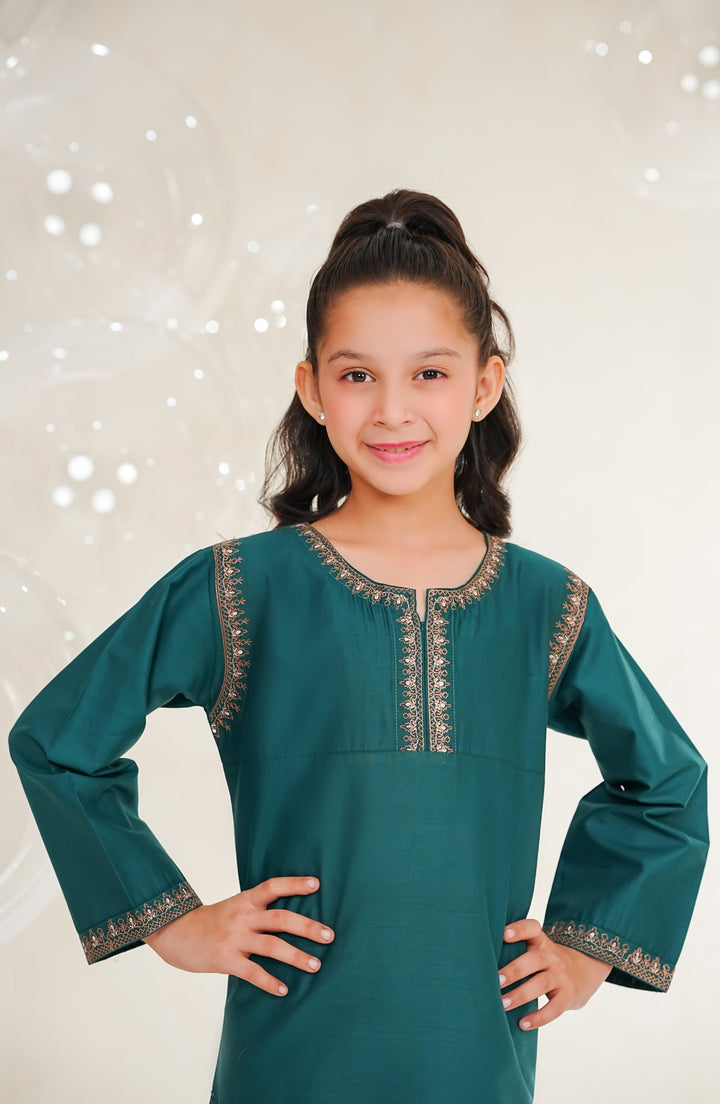 Amna Khadija Guriya Embroidered Cotton Stitched 2 Piece Suit - AKG-08 - AM25GRY - Green - Girls Collection