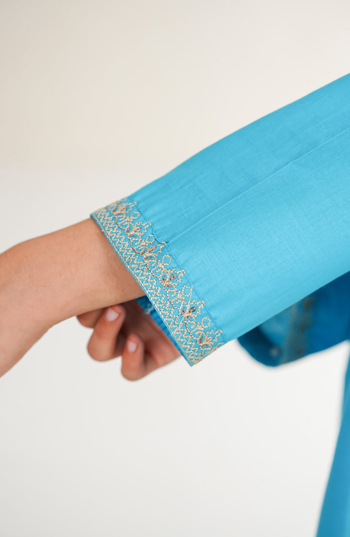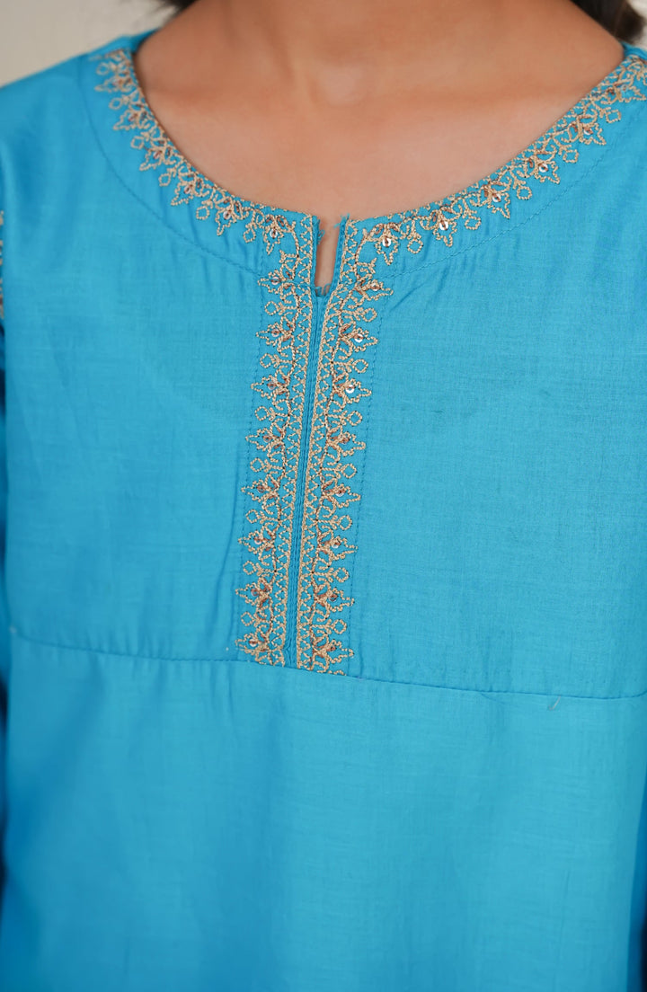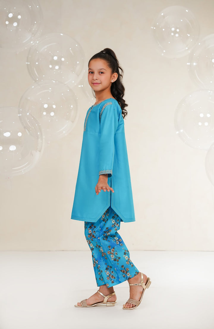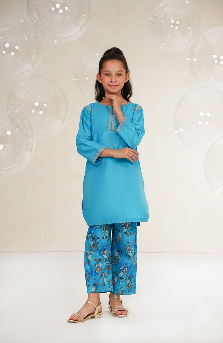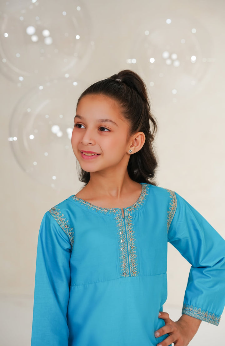 Amna Khadija Guriya Embroidered Cotton Stitched 2 Piece Suit - AKG-10 - AM25GRY - Blue - Girls Collection