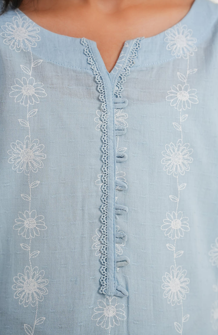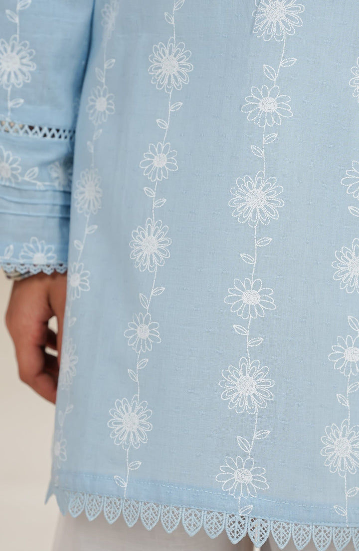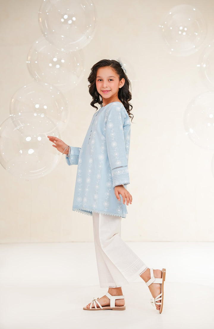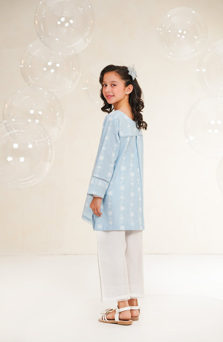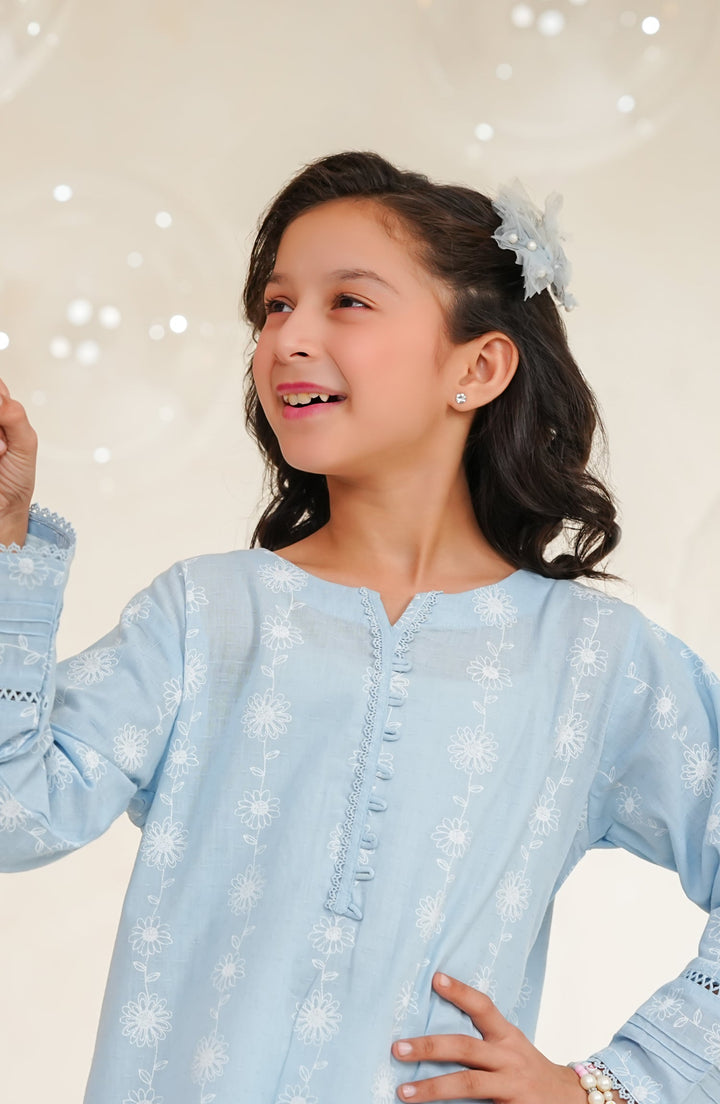 Amna Khadija Guriya Printed & Self Jacquard Cotton Stitched 2 Piece Suit - AKG-09 - AM25GRY - Blue - Girls Collection