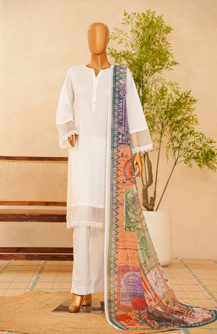 Amna Khadija Liberty Embroidered Jacquard Cotton Stitched 2 Piece Suit - D-2820 - AM25TLE - White - Summer Collection