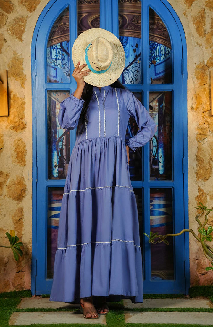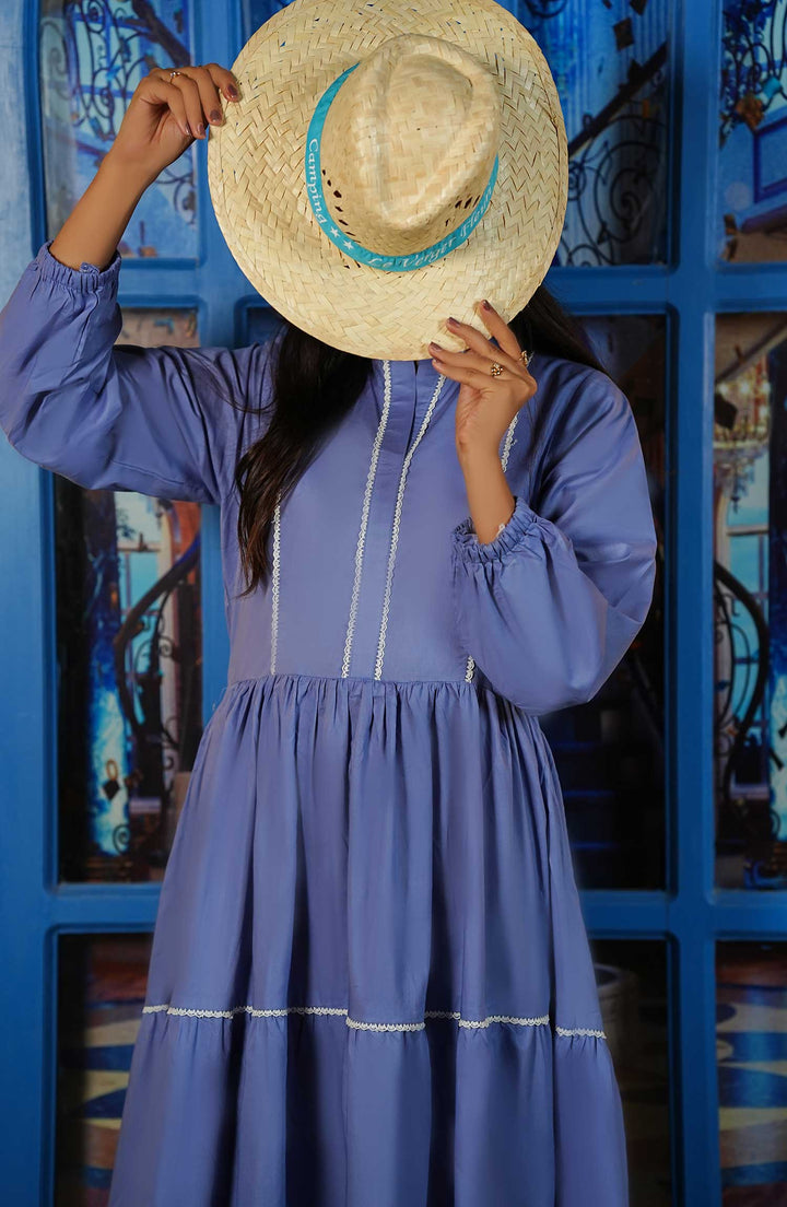 Amna Khadija Mommy N Me Solid Cotton Stitched Frock - AK25BM - M-01 - Blue - Summer Collection