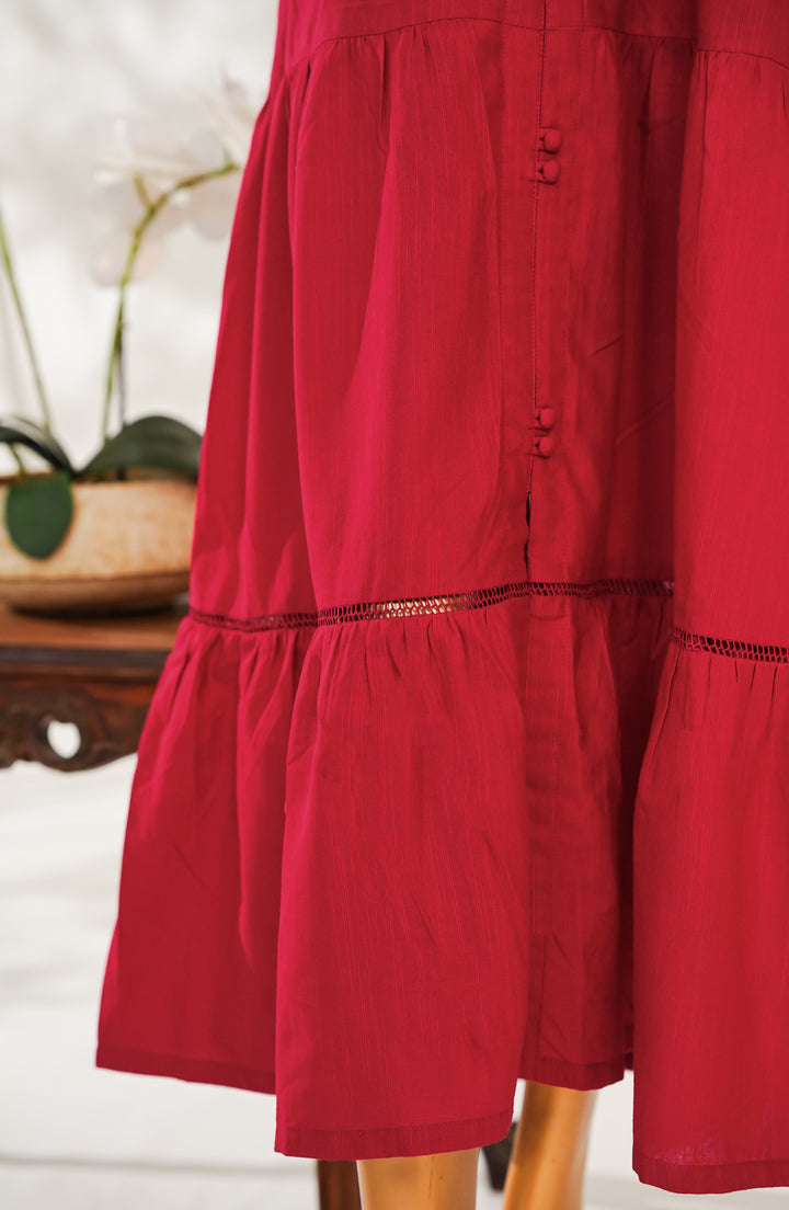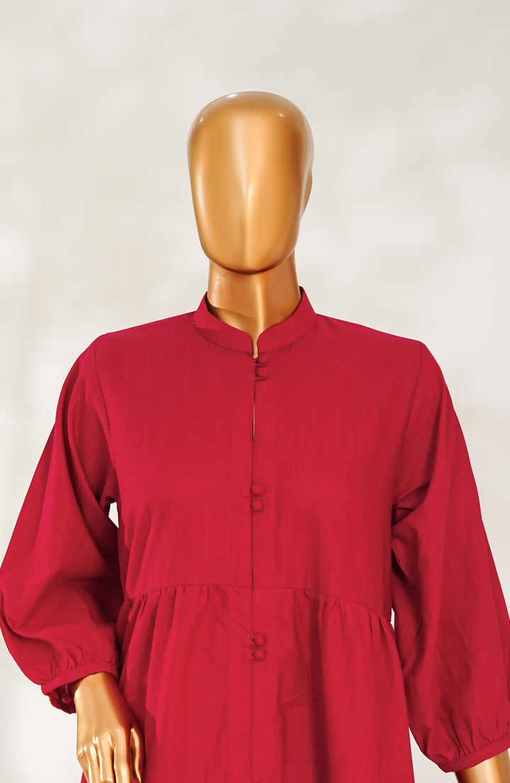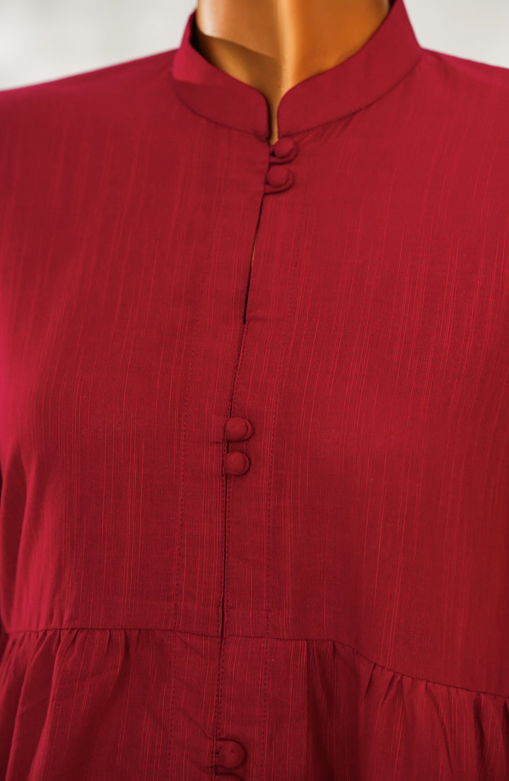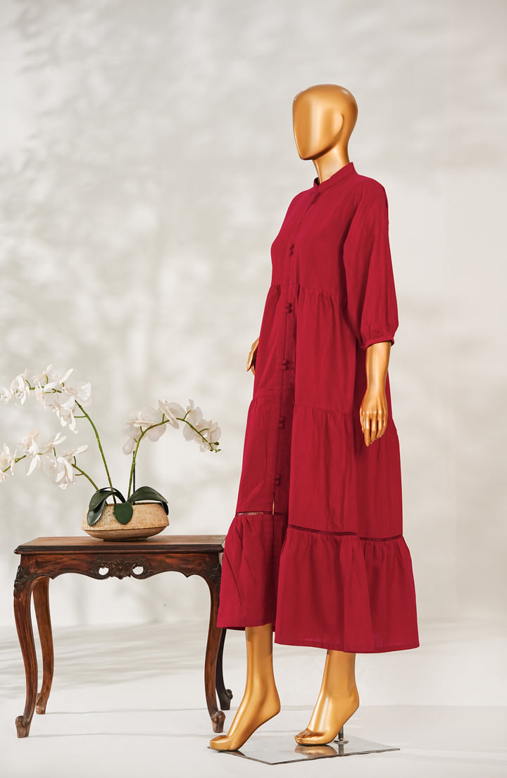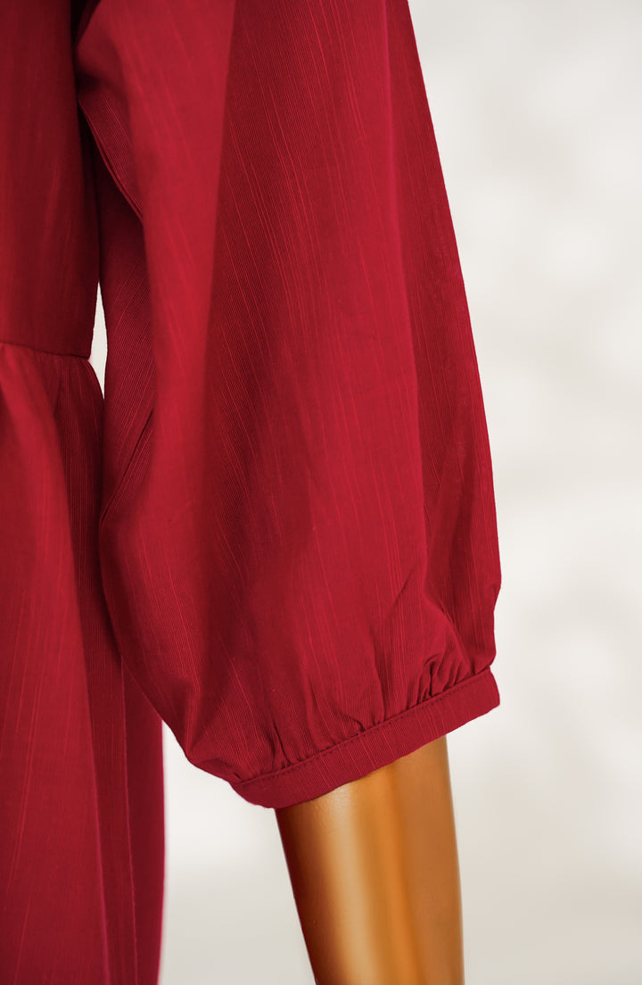 Amna Khadija Printed Khaddar Stitched Frock - FMAM - 02 - Maroon - Frock Mode Collection