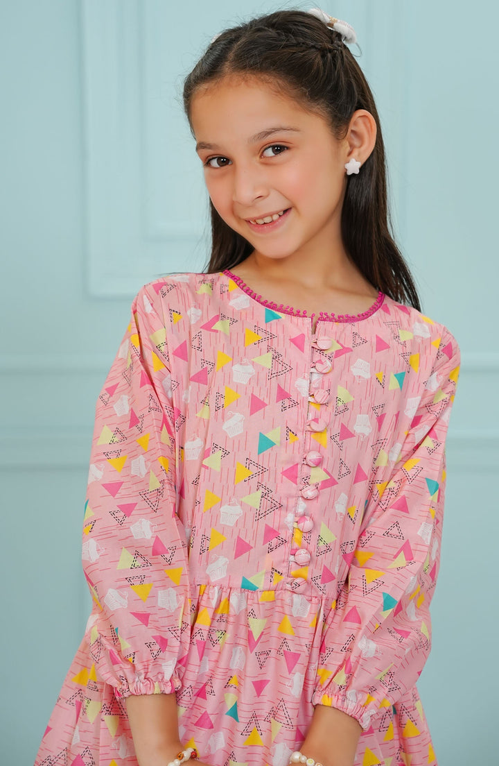 Amna Khadija Printed Lawn Stitched 1 Piece Maxi - BBPW-02 - AM25BBPW - Pink - Kids Collection