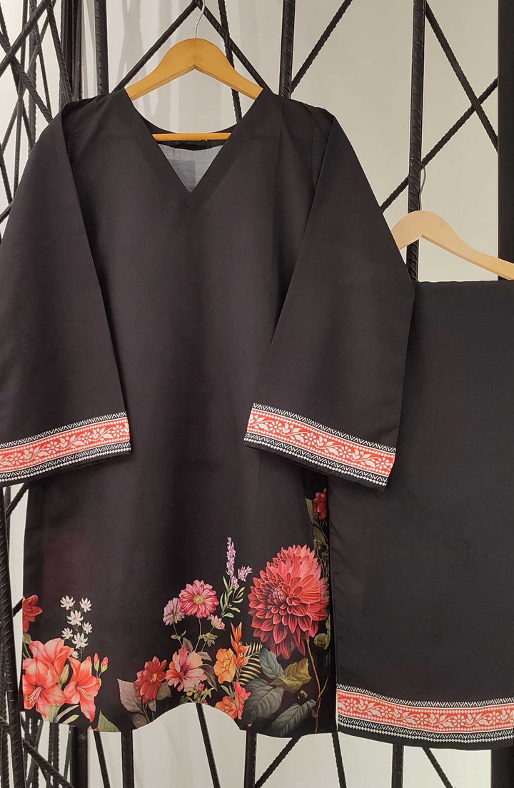 Amna Khadija Printed Swiss Lawn Stitched 2 Piece - D-03 - AK25SW - Black - Summer Collection