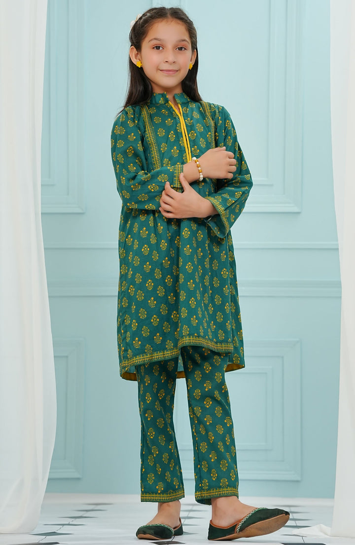 Amna Khadija Printed Lawn Stitched 2 Piece Suit - BBPW-04 - AM25BBPW - Green - Kids Collection
