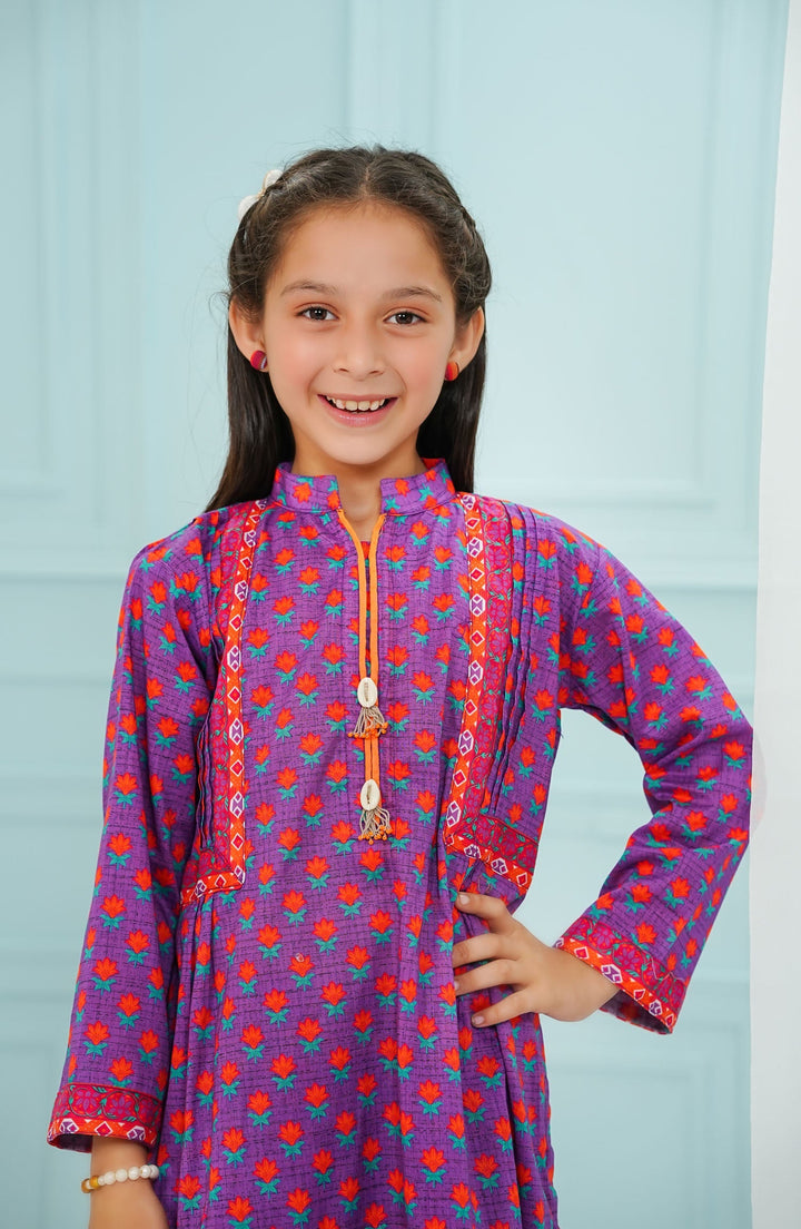 Amna Khadija Printed Lawn Stitched 2 Piece Suit - BBPW-06 - AM25BBPW - Magenta - Kids Collection