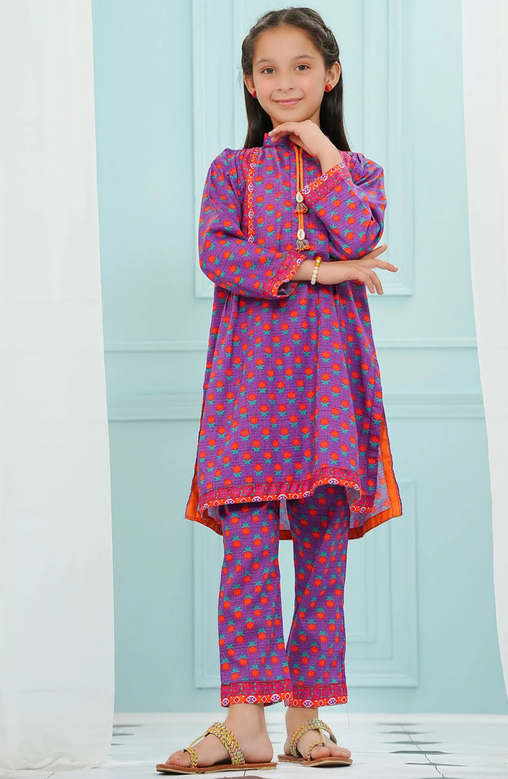 Amna Khadija Printed Lawn Stitched 2 Piece Suit - D-06 - Magenta