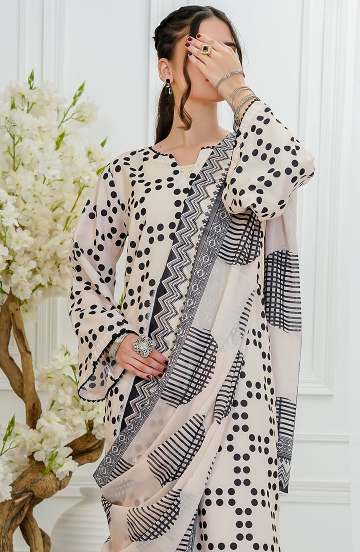 Amna Khadija Printed Lawn Stitched 3 Piece Suit - FDSEF-04 - AM25ESF - Off White - Summer Collection