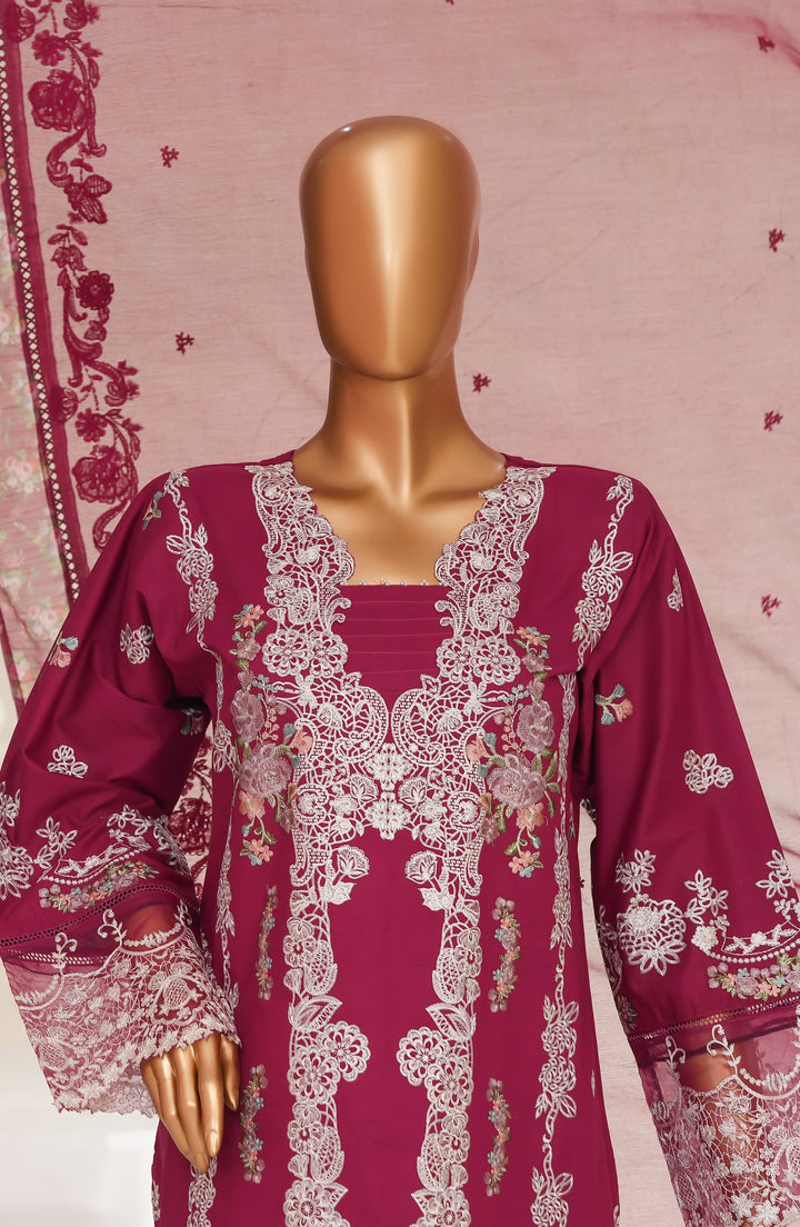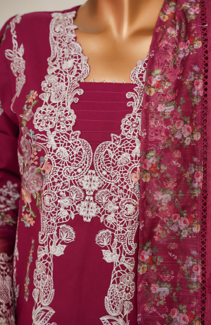 3 Piece Stitched Cotton Embroidered Front, Embroidered Sleeves