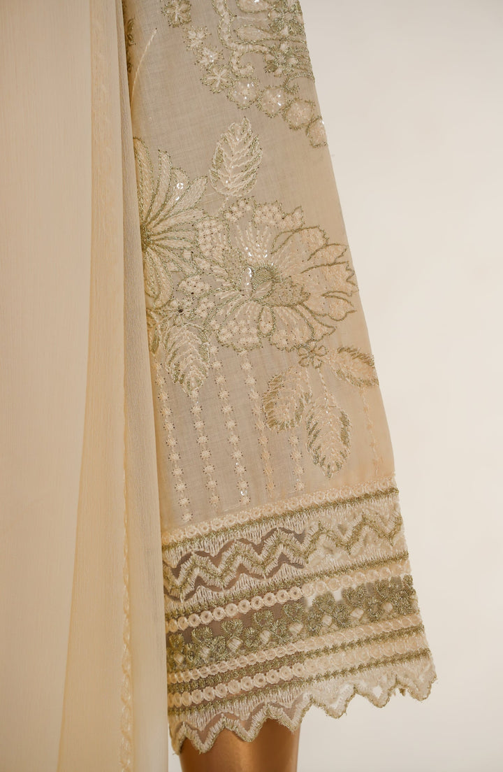 Anaya by Amna Khadija Embroidered Cotton Stitched 3 Piece Suit - ASL-17 - AM25ASLN - Fawn - Luxury Collection