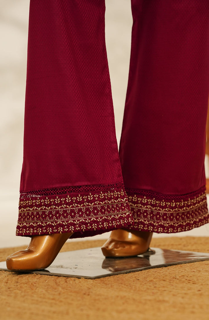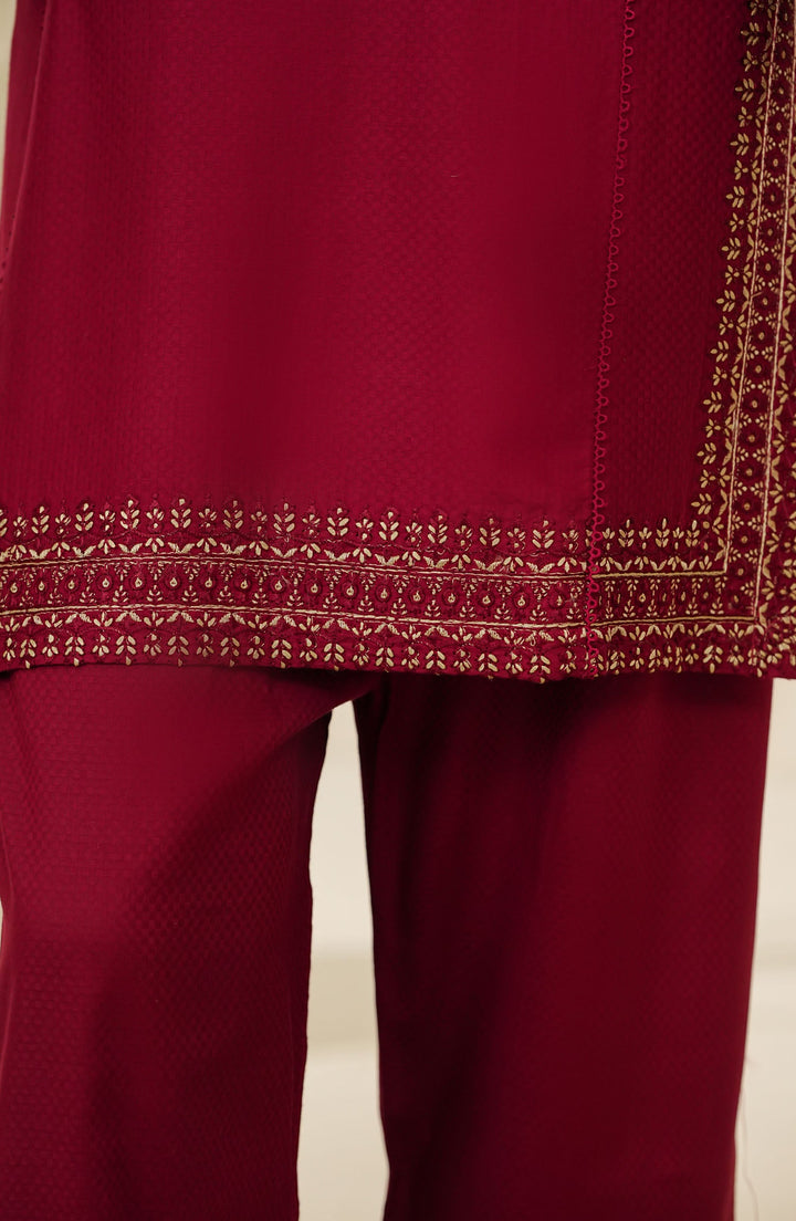 Aroha by Amna Khadija Embroidered Cotton Stitched 2 Piece Suit - AKPA-03 - AK25AROH - Maroon - Summer Collection