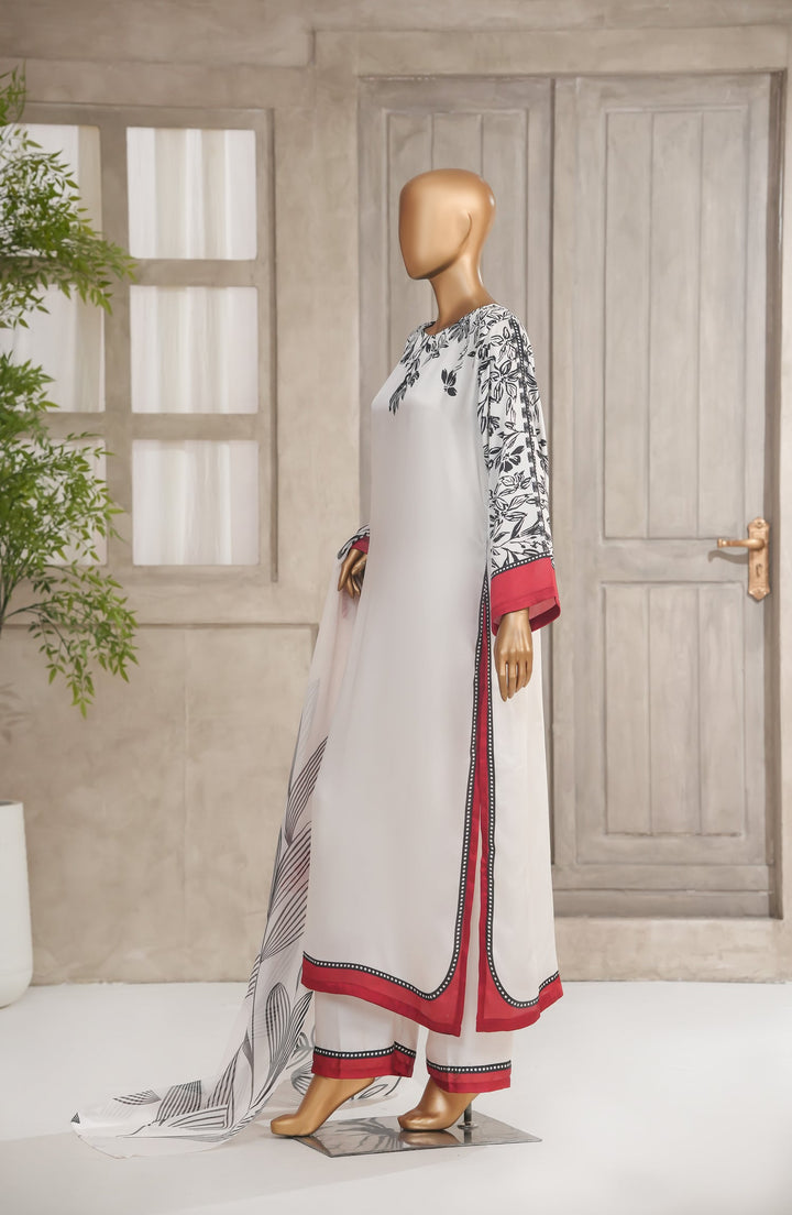 Batari Charmeous by Amna Khadija Printed Poly Charmeous Silk Stitched 3 Piece Suit - BCM-01 - AM25BAT - White - Casual Collection