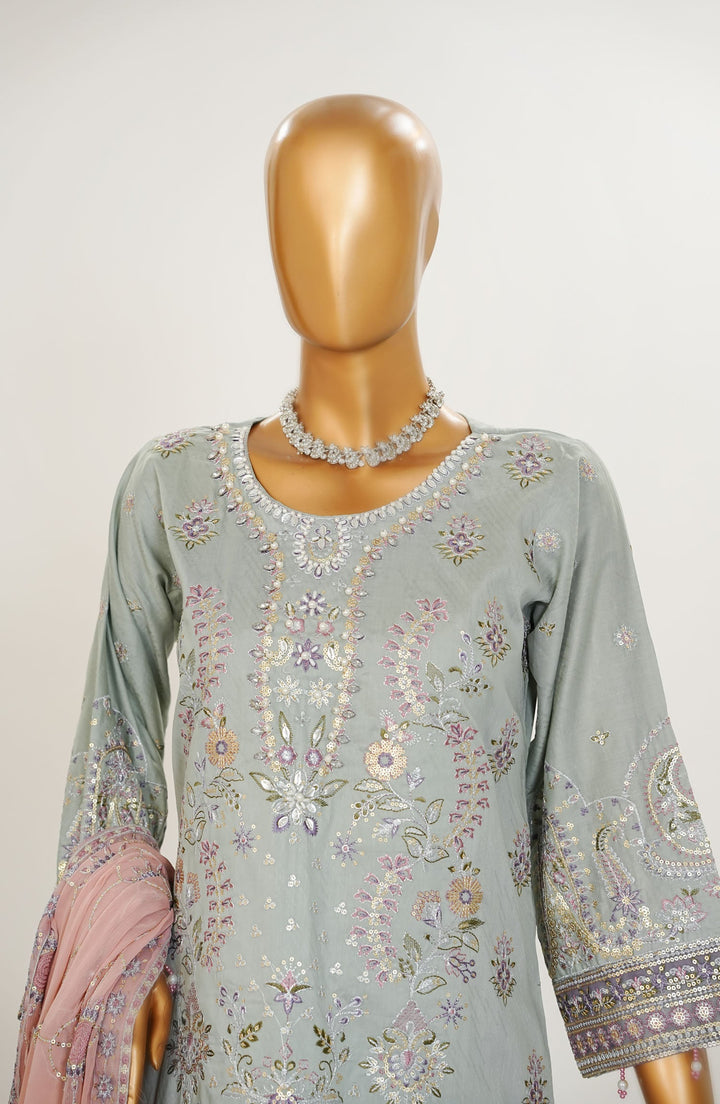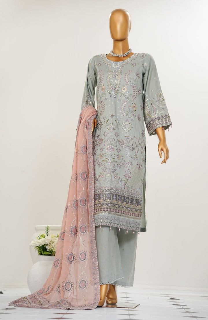 Durnaz by Amna Khadija Embroidered Jacquard Lawn Stitched 3 Piece Suit - AM25DRN - BR CH 01 - Grey - Festive Collection