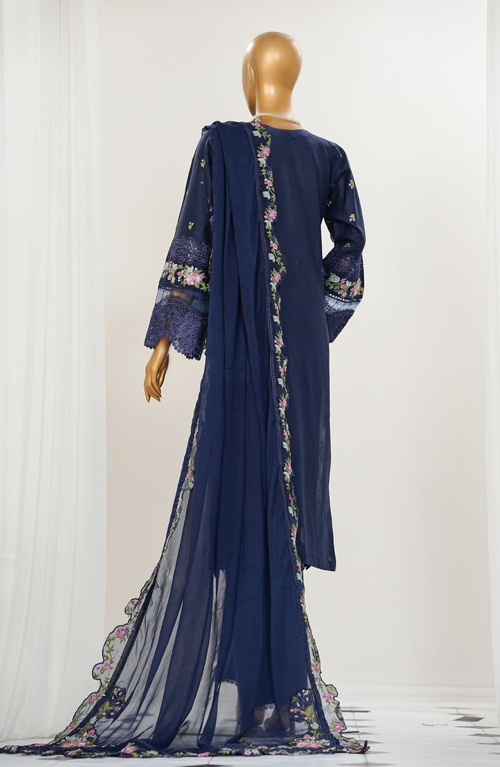 Durnaz by Amna Khadija Embroidered Jacquard Lawn Stitched 3 Piece Suit - AM25DRN - ELF 02 - Dark Blue - Festive Collection