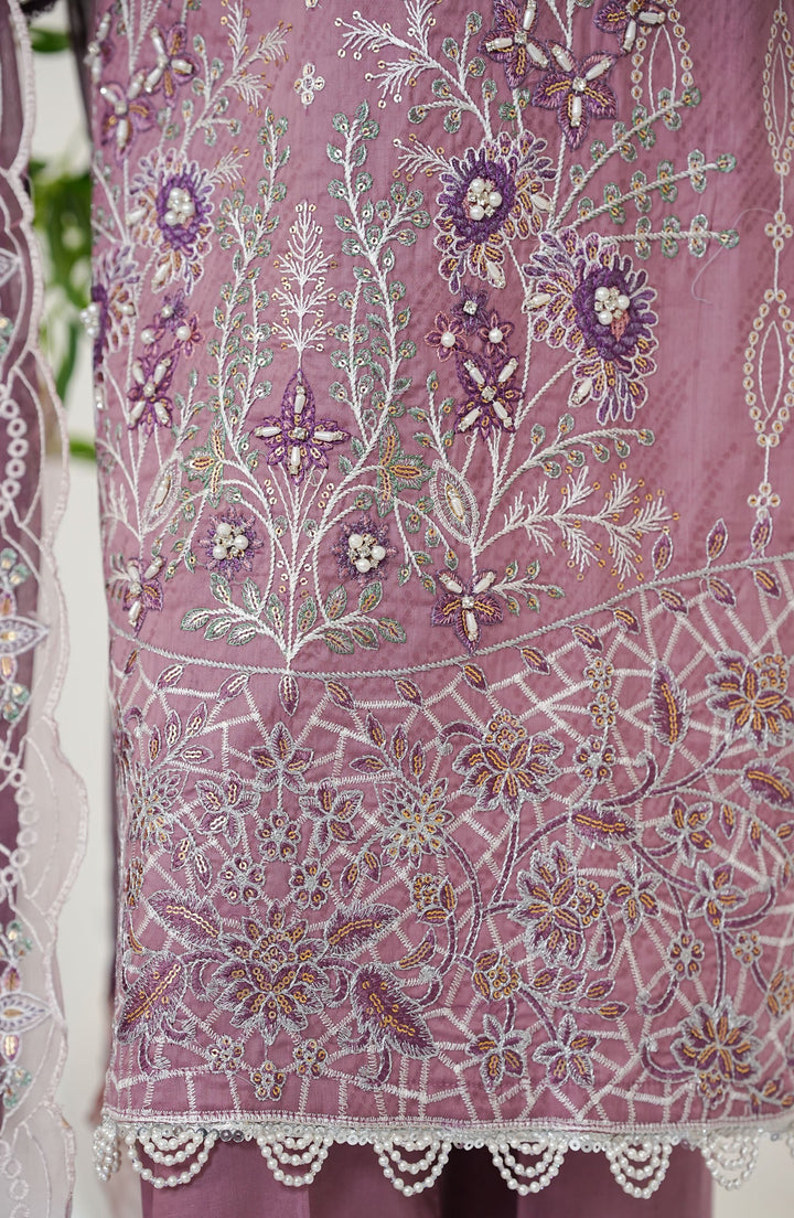 Durnaz by Amna Khadija Embroidered Jacquard Lawn Stitched 3 Piece Suit - AM25DRN - M 23 D4 - Purple - Festive Collection