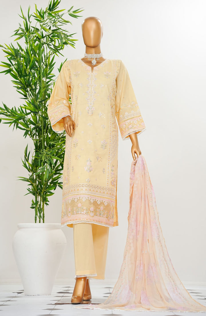 Durnaz by Amna Khadija Embroidered Jacquard Lawn Stitched 3 Piece Suit - AM25DRN - Rang e Haya - Peach - Festive Collection