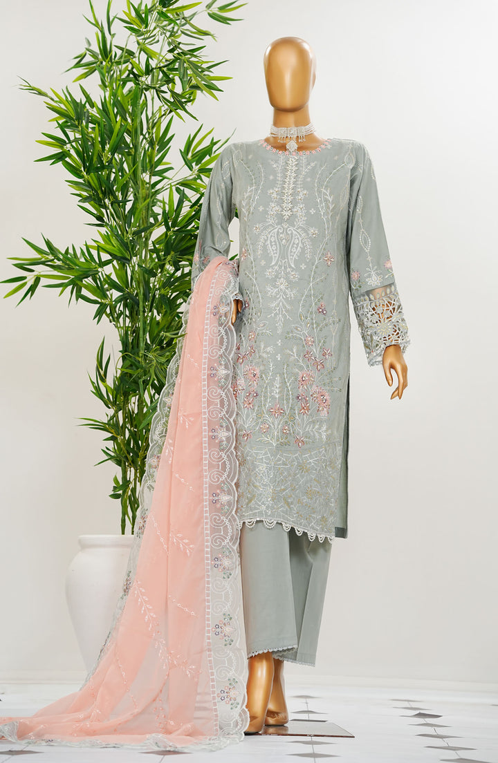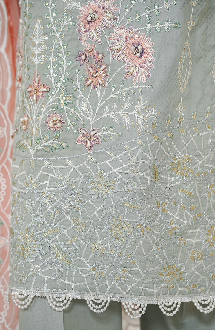 Durnaz by Amna Khadija Embroidered Jacquard Lawn Stitched 3 Piece Suit - D -06 - Light Grey