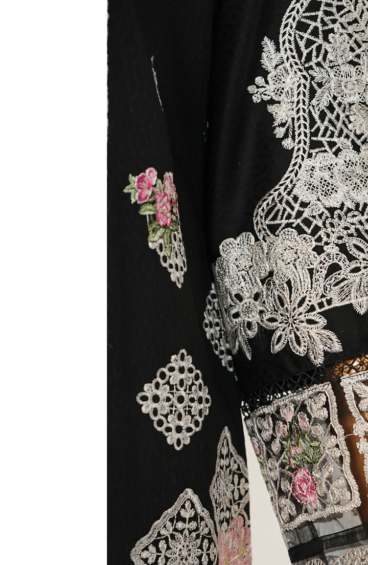 Durnaz by Amna Khadija Embroidered Jacquard Lawn Stitched 3 Piece Suit - D - 13 - Black