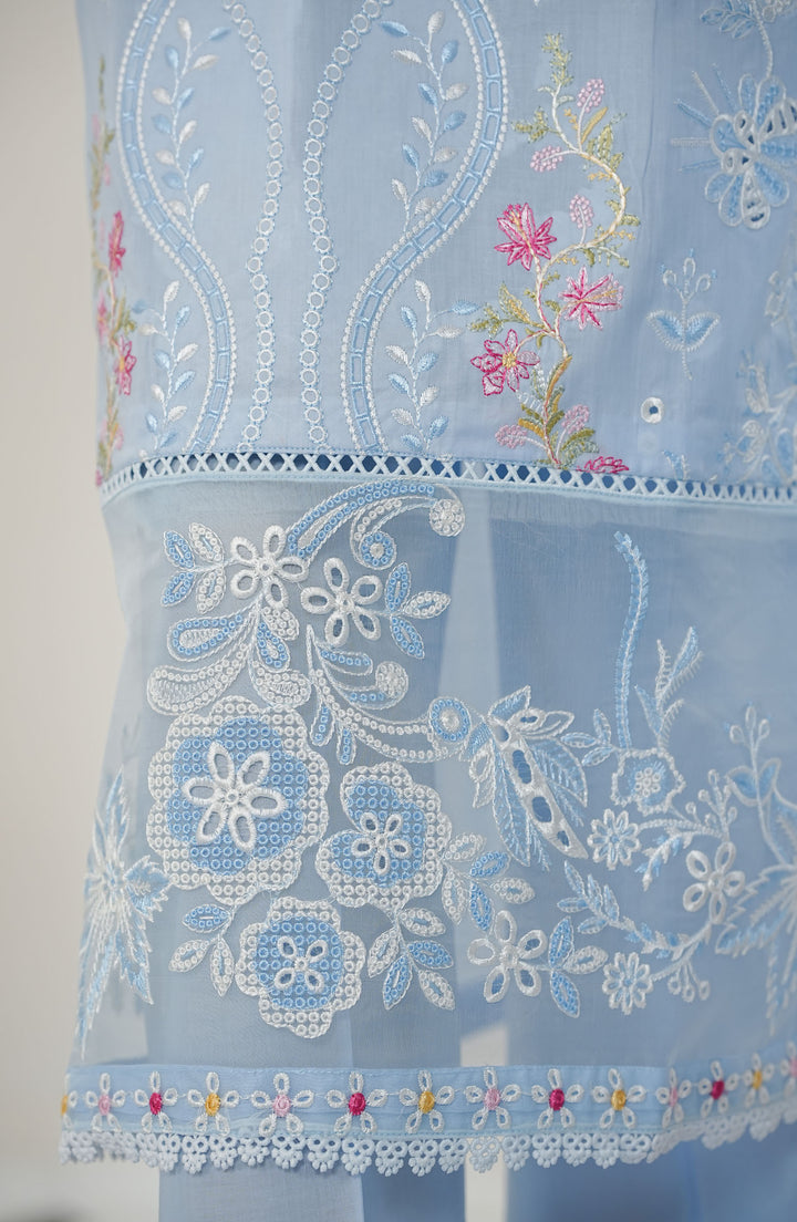 Durnaz by Amna Khadija Embroidered Jacquard Lawn Stitched 3 Piece Suit - D - 14 - Light Blue