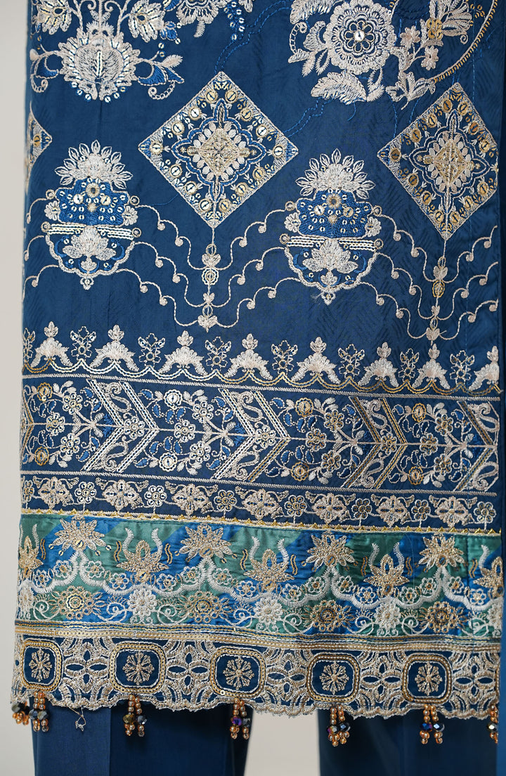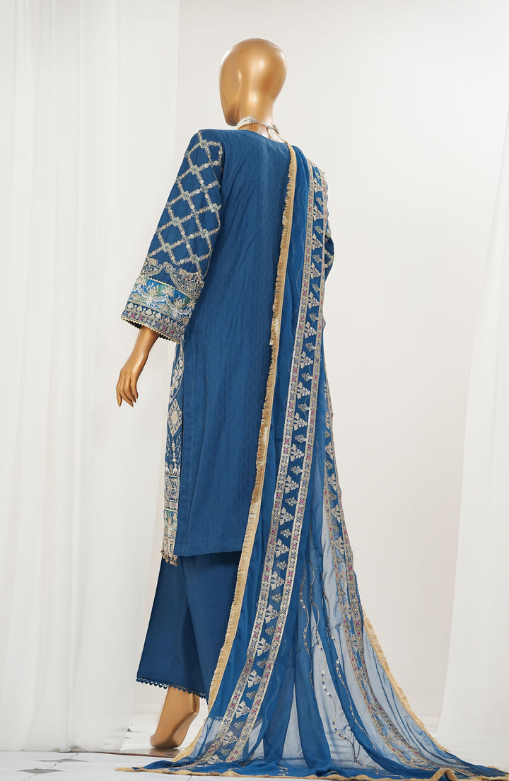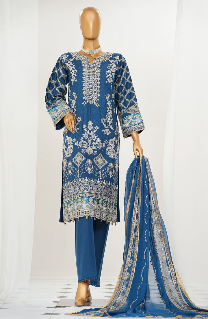 Durnaz by Amna Khadija Embroidered Jacquard Lawn Stitched 3 Piece Suit - D - 16 - Blue