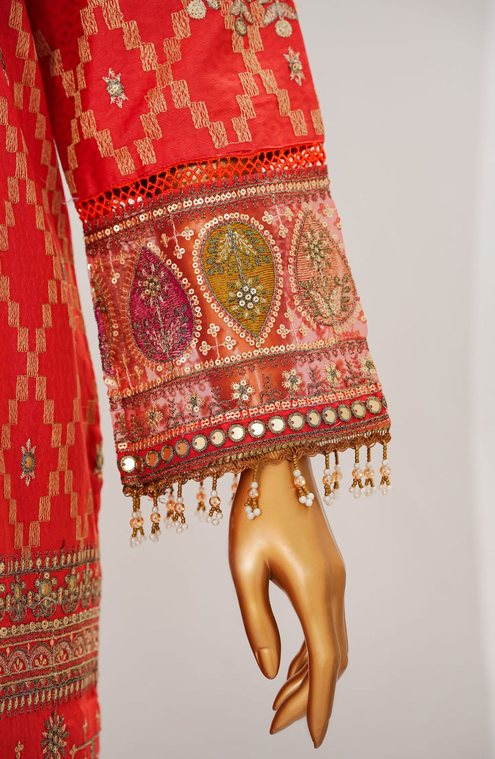 Durnaz by Amna Khadija Embroidered Jacquard Lawn Stitched 3 Piece Suit - D - 17 - Orange