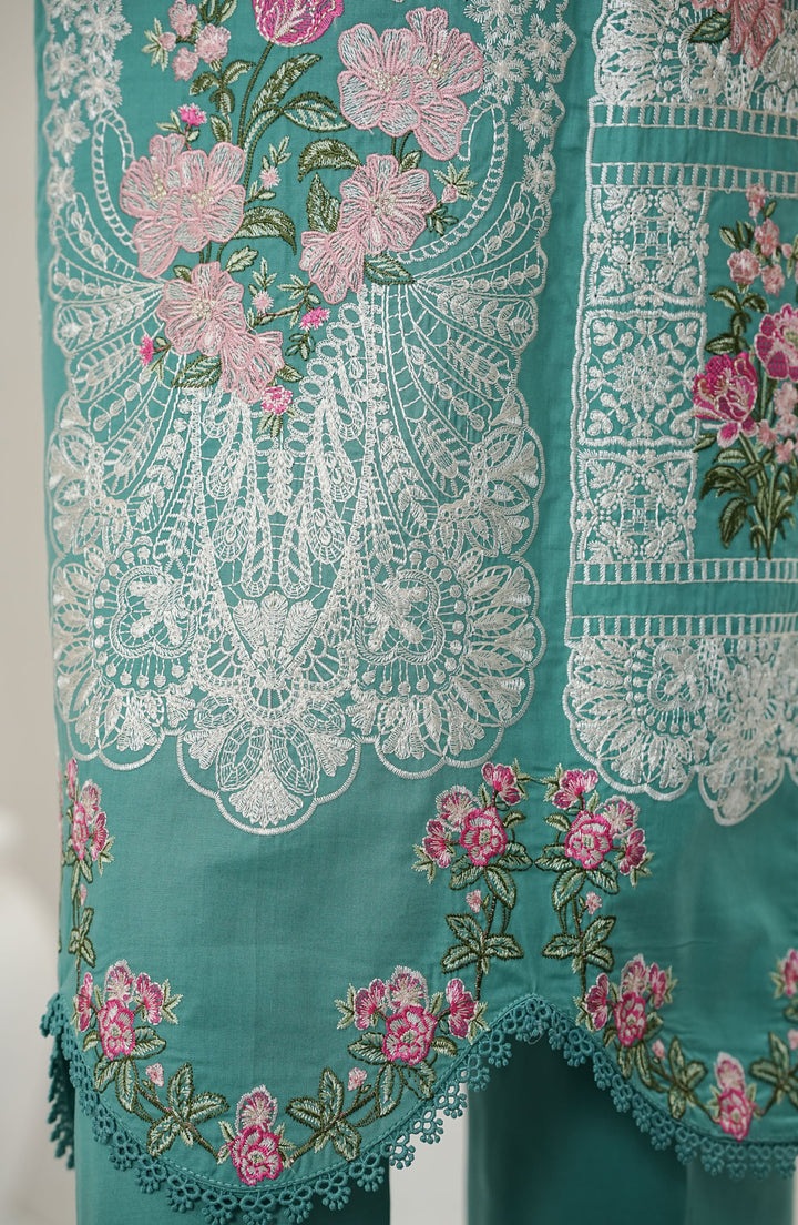 Durnaz by Amna Khadija Embroidered Jacquard Lawn Stitched 3 Piece Suit - D - 18 - Sea Green