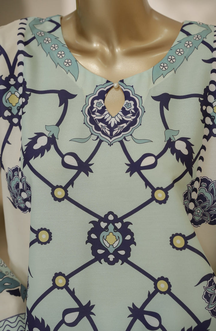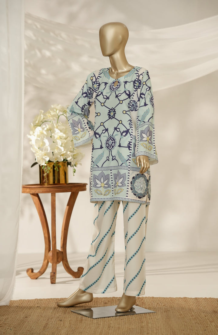 Fayon Prints by Amna Khadija Printed Poly Swiss Stitched Co ords Suit - FP-02 - AM25FYOP - White Blue - Casual Collection
