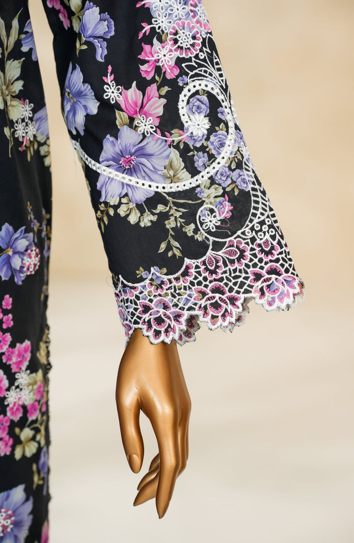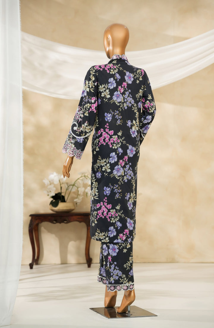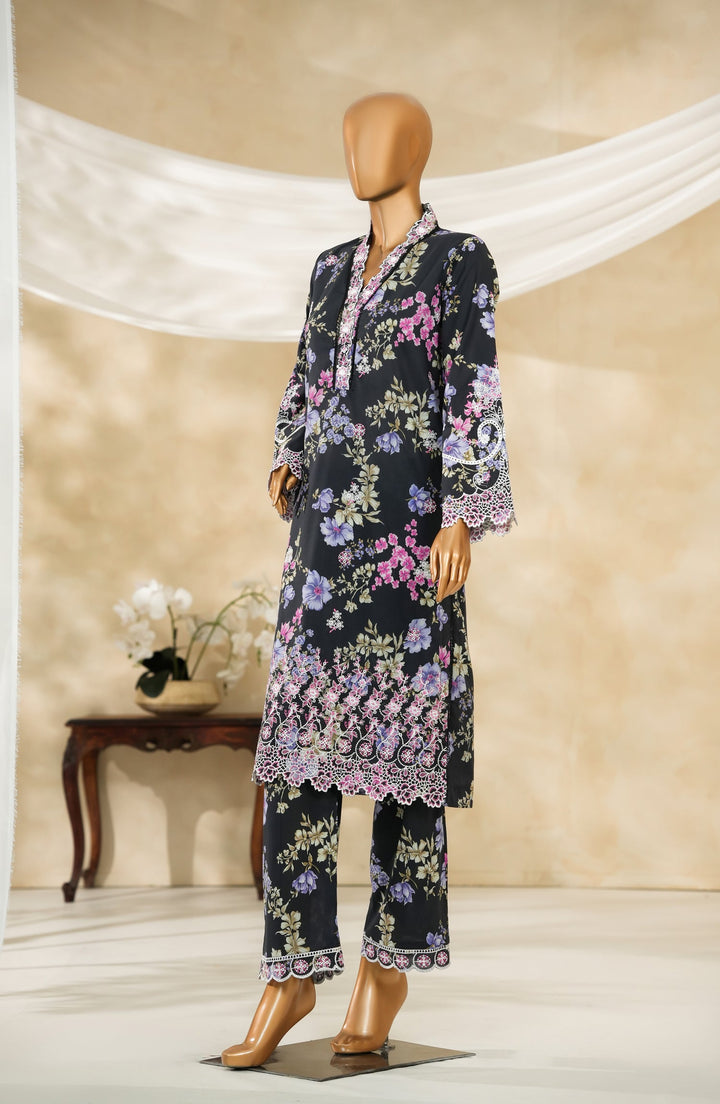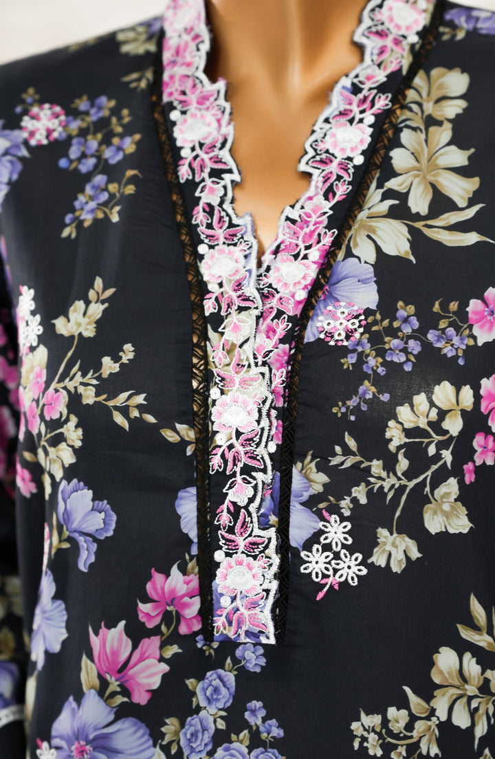 Floral Hours by Amna Khadija Digital Print & Embroidered Chikankari Cotton Stitched 2 Piece Suit - FHEC-03 - AM25FLRH - Black - Casual Collection