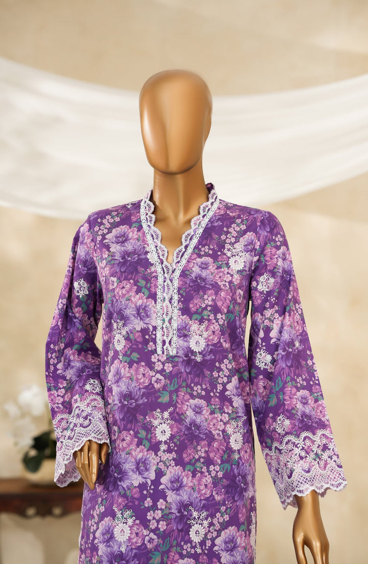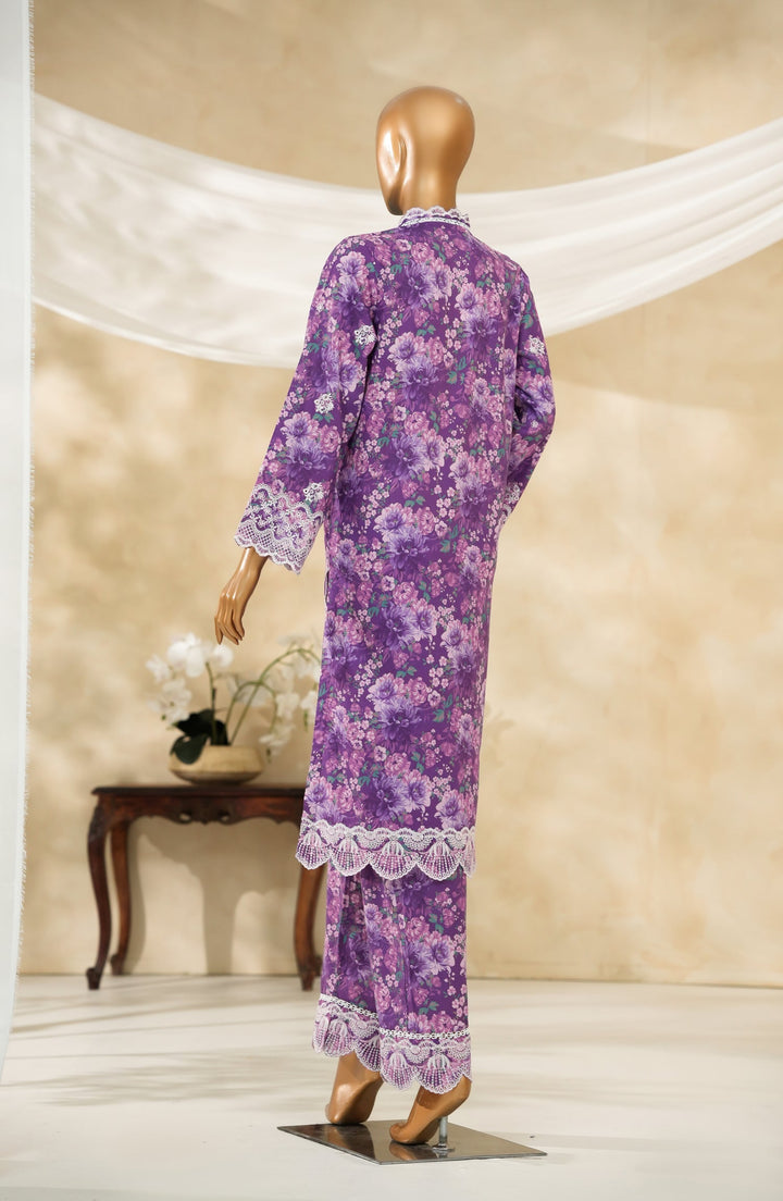 Floral Hours by Amna Khadija Digital Print & Embroidered Chikankari Cotton Stitched 2 Piece Suit - FHEC-05 - AM25FLRH - Purple - Casual Collection