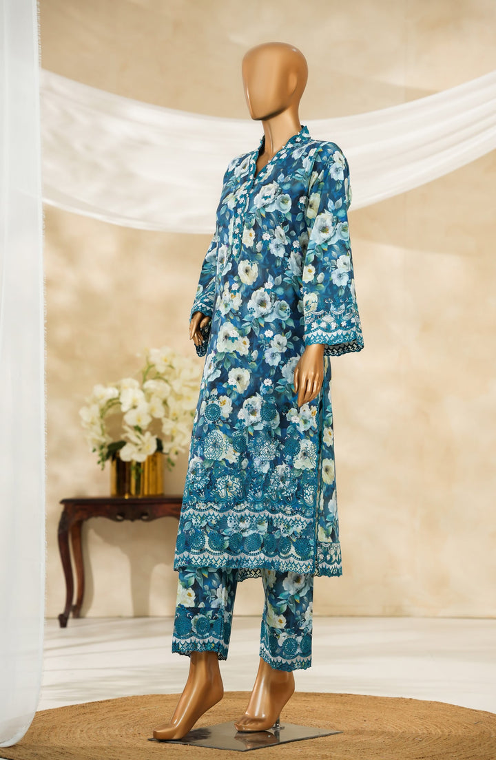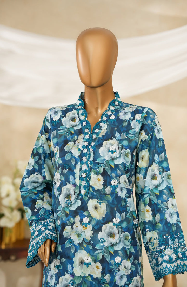 Floral Hours by Amna Khadija Digital Print & Embroidered Chikankari Cotton Stitched 2 Piece Suit - FHEC-07 - AM25FLRH - Blue - Casual Collection