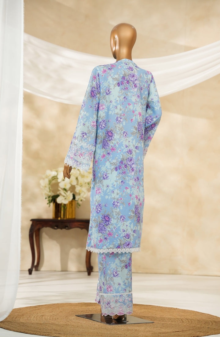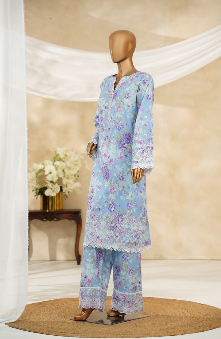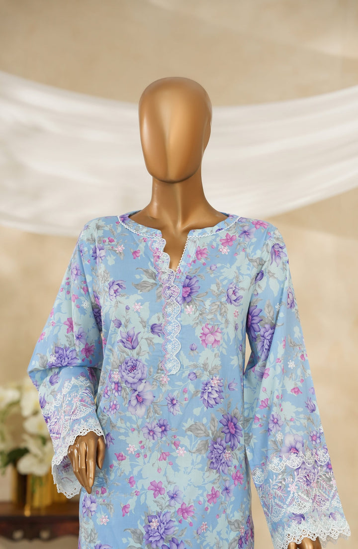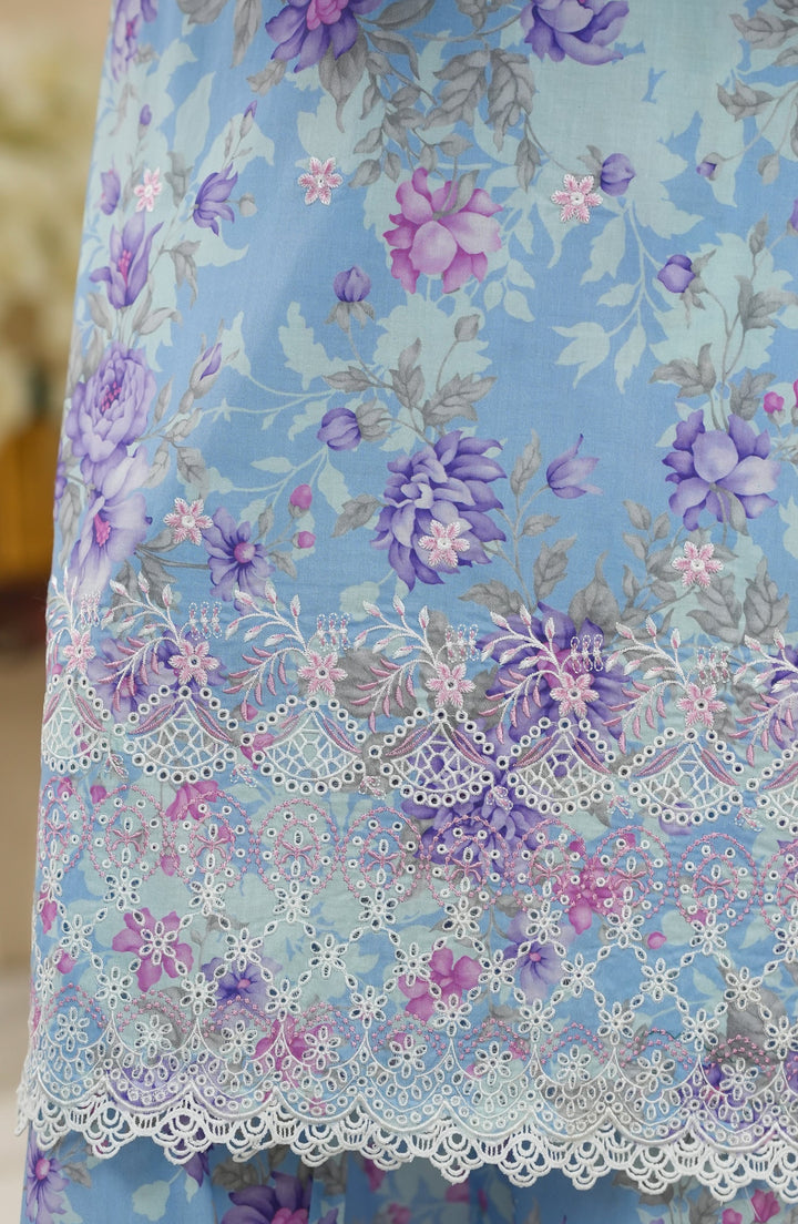 Floral Hours by Amna Khadija Digital Print & Embroidered Chikankari Cotton Stitched 2 Piece Suit - FHEC-09 - AM25FLRH - Blue - Casual Collection