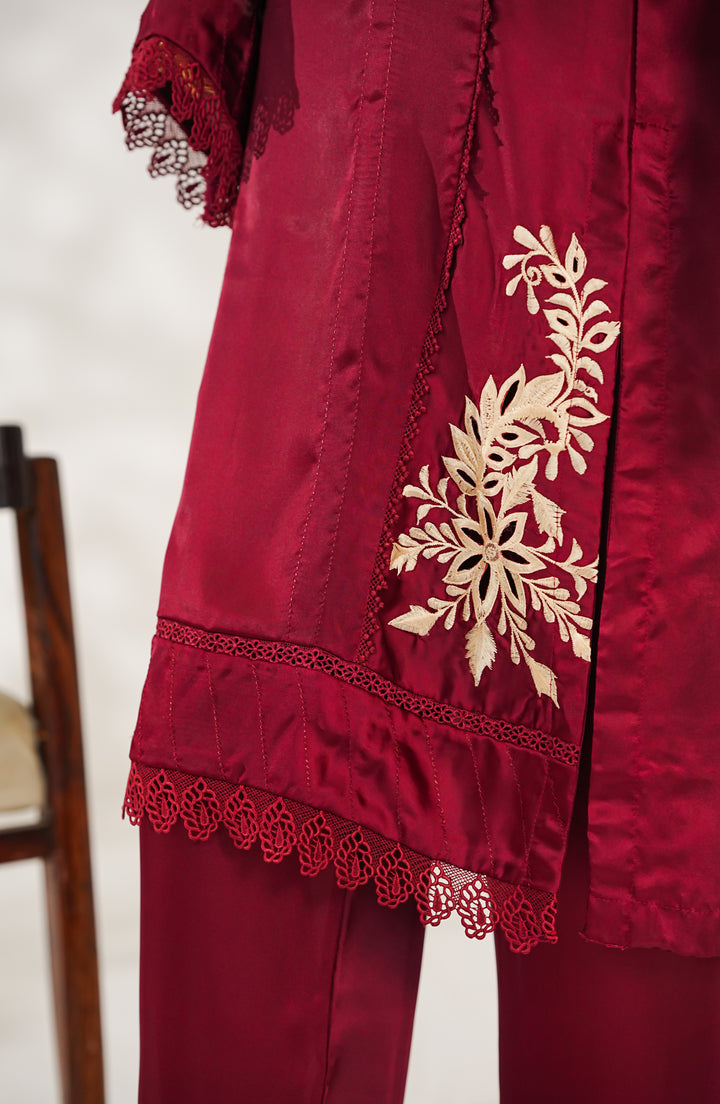 Jugni by Amna Khadija Embroidered Silk Stitched 2 Piece Suit - JSAK - 02 - Maroon - Festive Collection